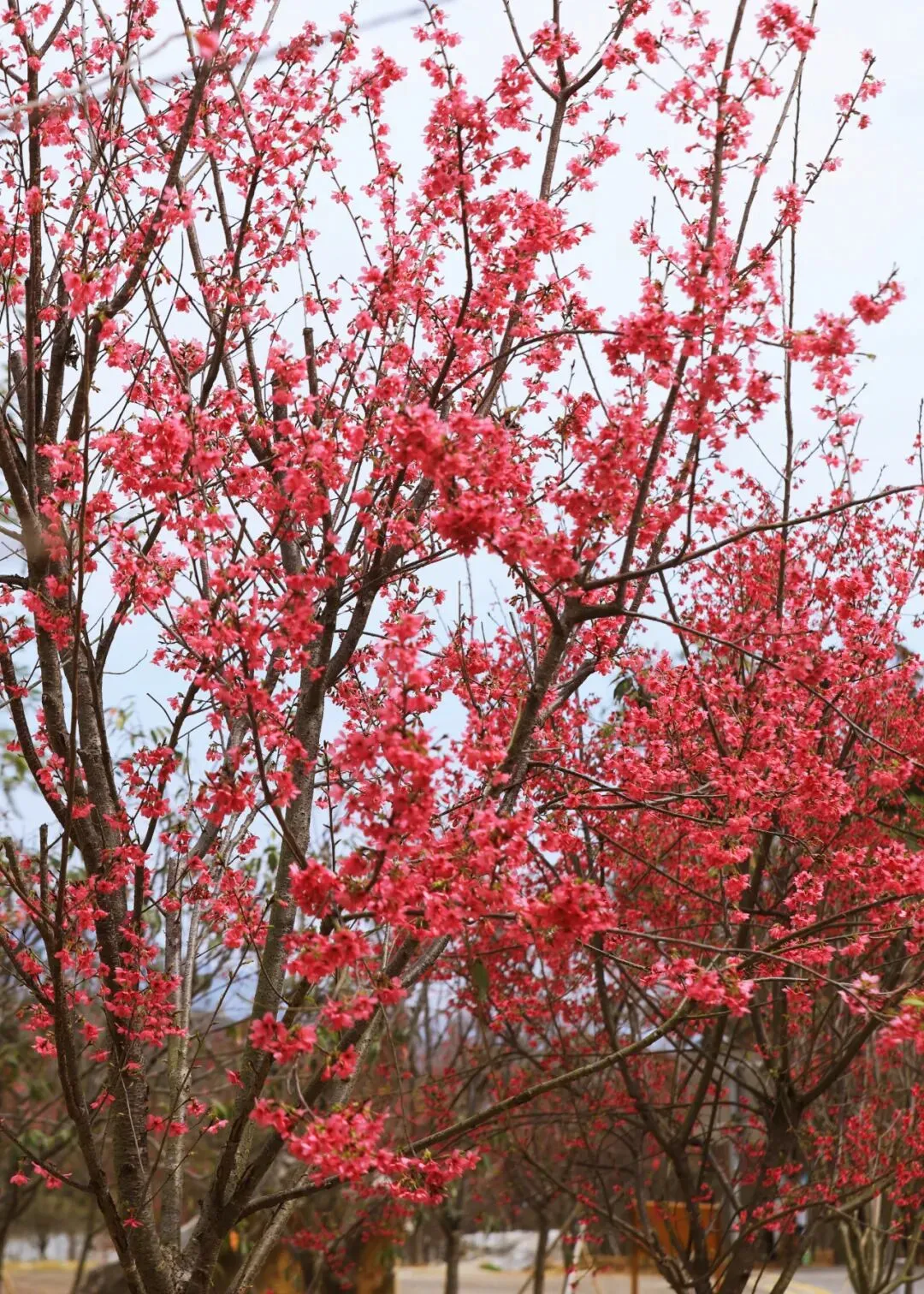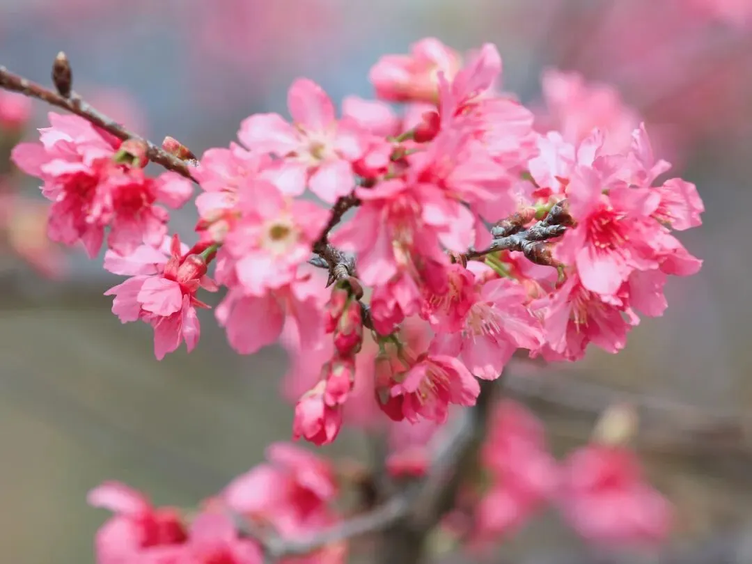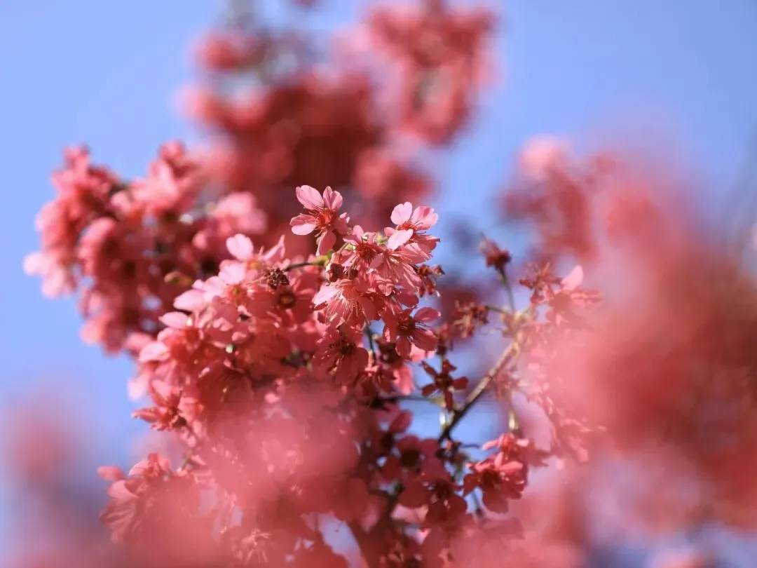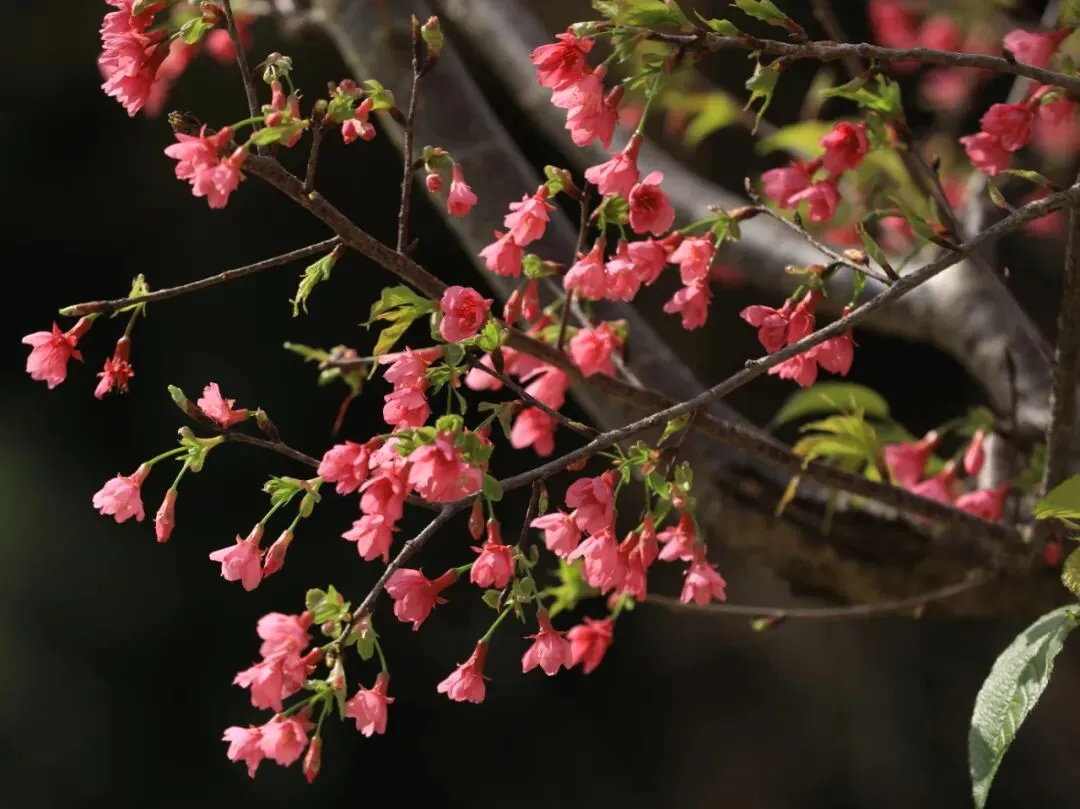 艳红的早樱花朵缀满枝头,