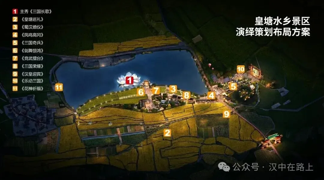 沿沟渠、道路、机耕道精心布局的休闲营地,让游客无需奔波,就能就近欣赏湖光山色与舞台演出。在这样的环境中,游客可以实现“居于此、赏于此”的松弛感,沉浸式感受人与自然的和谐共生。无论是和家人一起在这里小憩,享受温馨的亲子时光,还是和好友相聚,畅谈人生,都能找到专属的休闲角落。湖泊之上搭建的湖心浮岛舞台,更是一大亮点。将以三国、汉文化为内核,融入动漫、玄幻等现代元素,打造出专属皇塘的特色主题演出。在水光山色间,历史与现代相互碰撞,游客可以沉浸式感受文化的魅力。