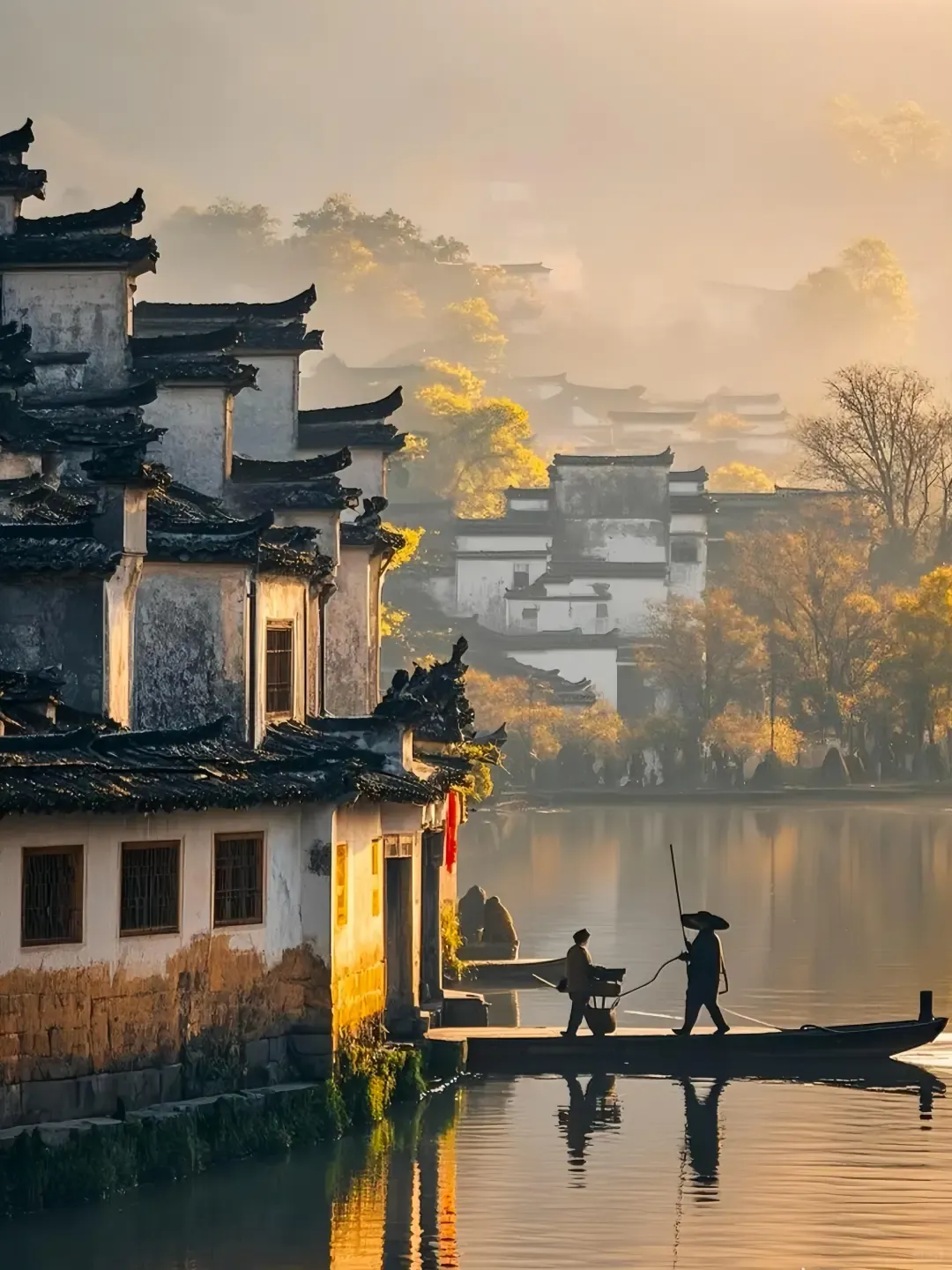 清晨7点前逛古村,完美避开人流;穿素色衣服,在月沼拍倒影绝美。