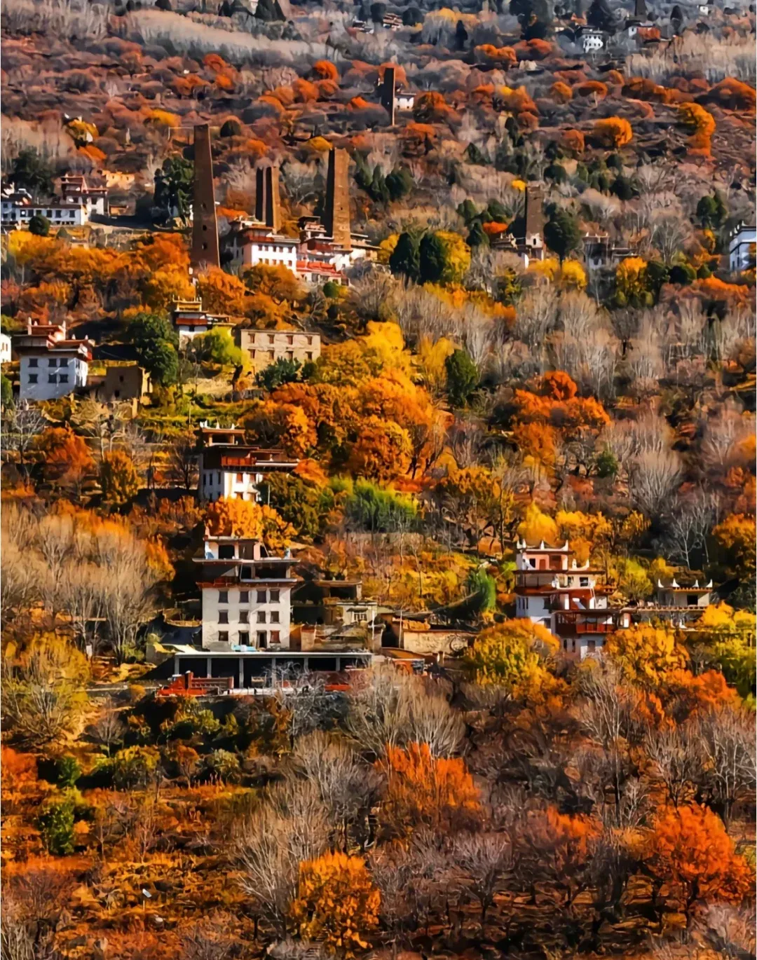 ✅ 川西秘境,碉楼与藏式民居依山而建。秋有漫山彩林,春有梨花如雪,嘉绒藏族风情浓郁。
