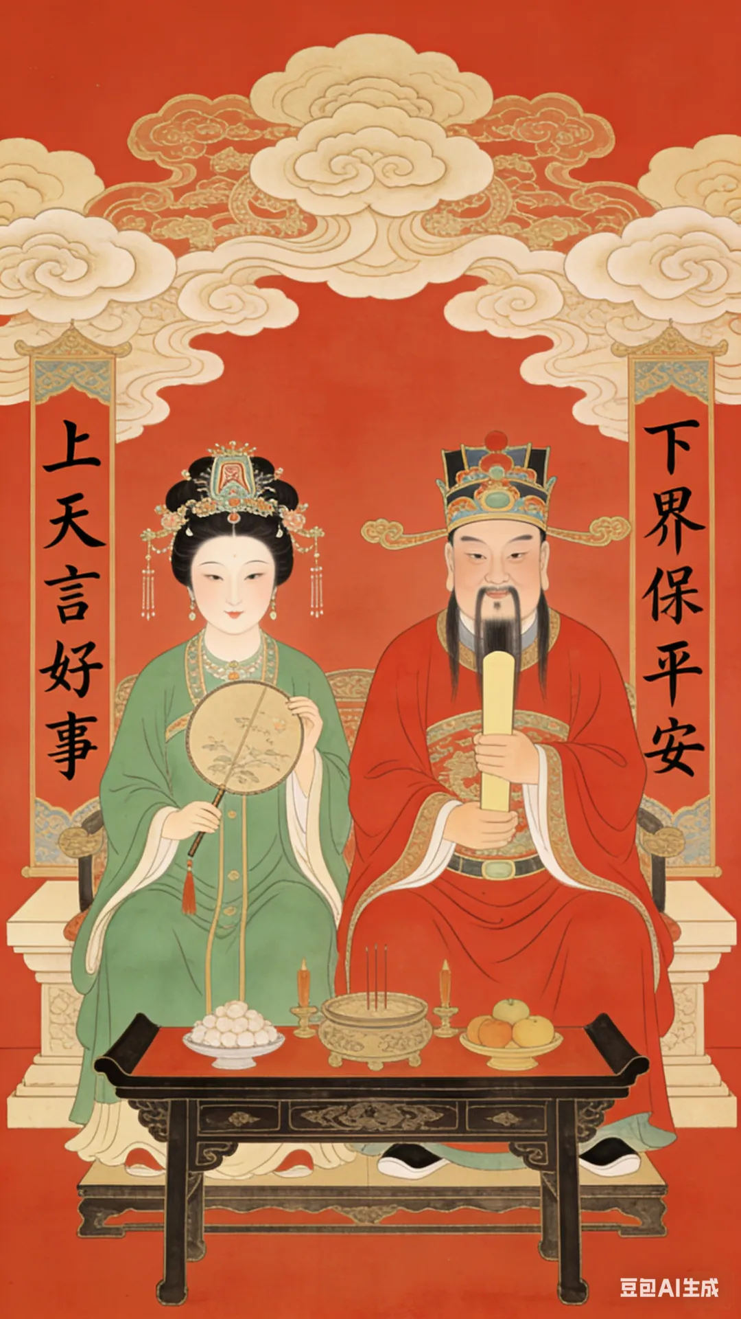 民间相传,灶王爷是常驻人间的家神,掌管着一家烟火与善恶,每逢腊月二十三,便要上天向玉皇大帝述职。百姓不求奢华供品,只备上灶糖、糖瓜、关东糖等,取“二十三,糖瓜粘”的老话,用甜意粘住灶神的嘴,祈愿他“上天言好事,下界保平安”。灶台前燃一炷香,摆上清水、料豆,轻声念叨阖家安康,焚化旧灶像送神归天,简单的仪式里,是对生活的敬畏,对平安的期许,也是最朴素的人间信仰。