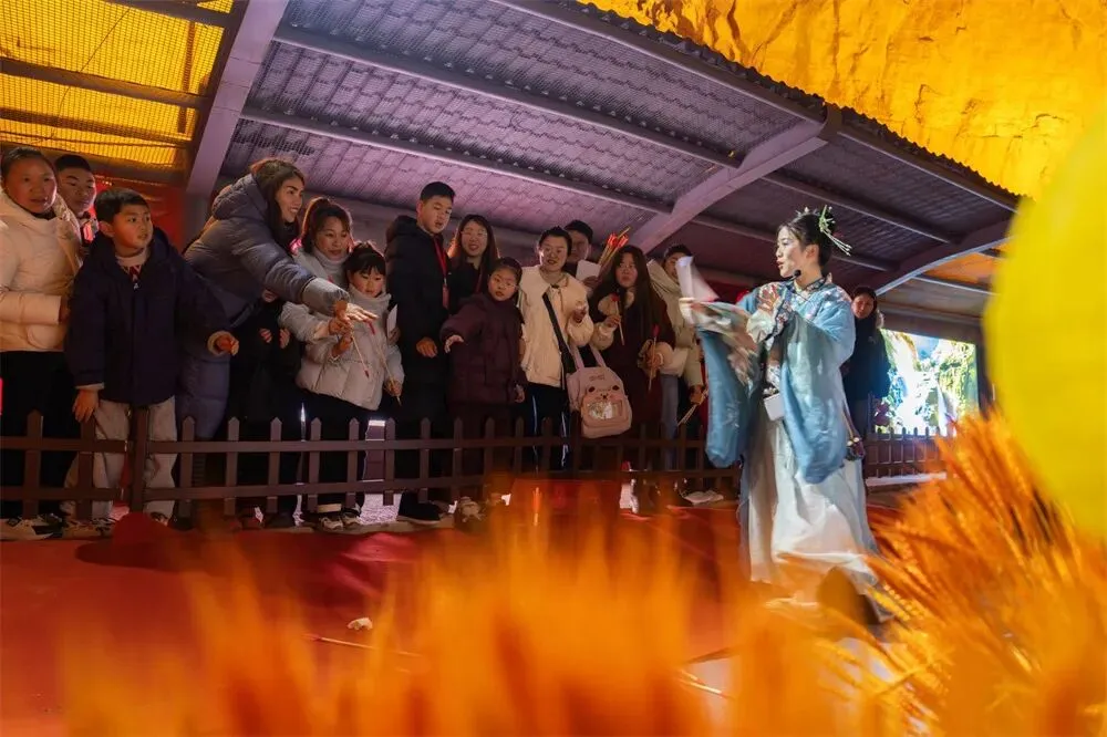 游客蒋露露直言此次游玩收获了满满快乐:“来到腾龙洞灯会是非常开心的,这一路走来有很多NPC的游戏可以一起互动,在互动的过程中非常快乐,利川这次举办的活动也非常有意义,年味十足。”