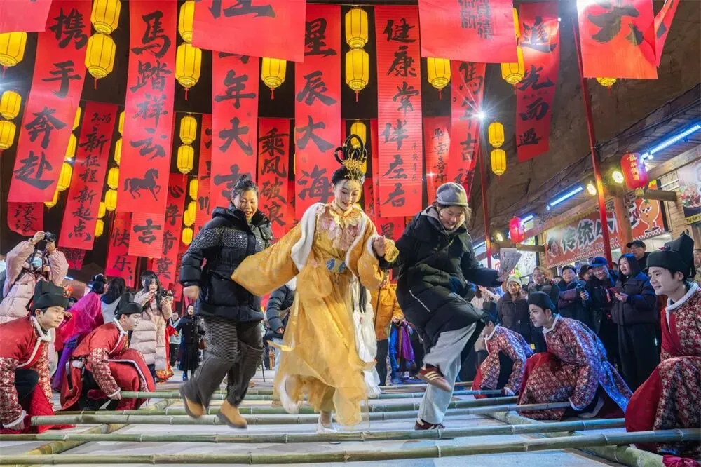 “往年灯会以静态观赏为主,今年我们创新融入大量NPC互动剧情,把灯会现场打造成可参与、可沉浸的文化场景。”张芙蓉表示,这一设计旨在让游客从“旁观者”变为“体验者”,真正实现从“看景”到“入景”的跨越。
