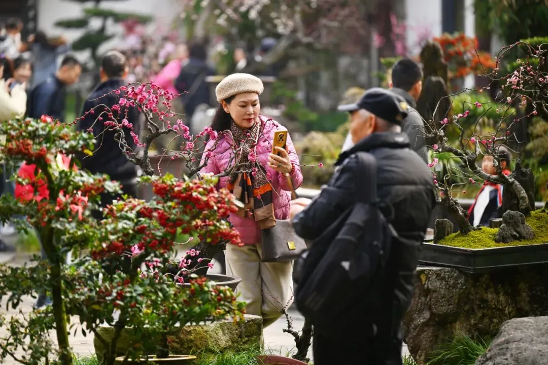 成都的春日浪漫与年味相融,日前,杜甫草堂第五十四届梅花展正式开展,数百盆梅花桩头缀满庭院;2月至3月,新津花舞人间第十三届郁金香节浪漫举行,成片郁金香、杜鹃竞相争艳,花海绵延不绝……在繁花盛放中,解锁新春雅致年味。
