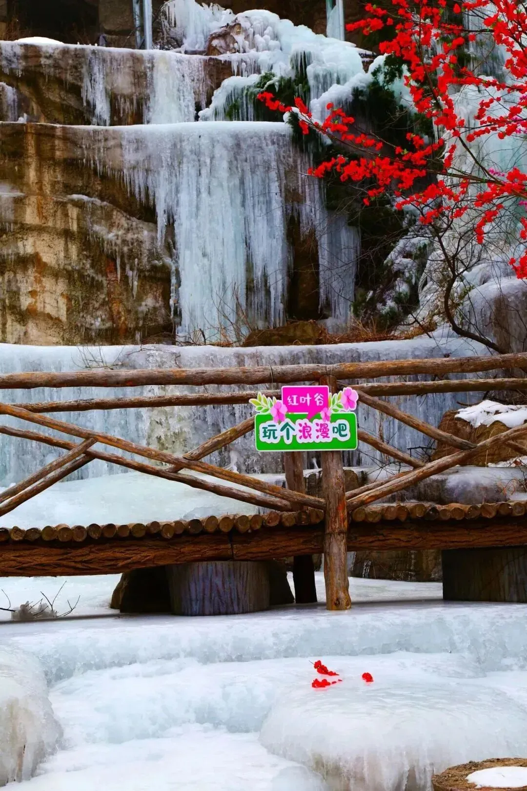 红叶谷景区同步举办冰瀑节(即日起至2月)与梅花节(即日起至3月),既可赏冰瀑晶莹,感受壮观的冰瀑景象,又可寻蜡梅幽香,欣赏朵朵梅花绽放枝头,不畏寒冬,冲寒而开。
