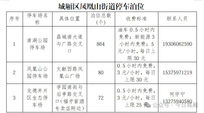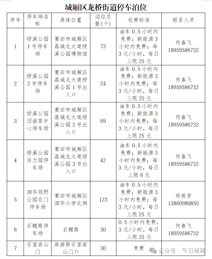 春节假期(2月15日至23日,共9天)每日8:00—22:00开放13个鲤城区属停车场(覆盖开元、鲤中、海滨、临江街道),共计1649个车位。其中,江南公园、北滨江公园停车场实行全天开放,满足市民游客停车需求。