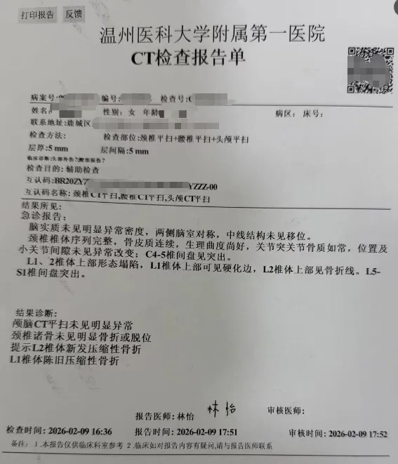 事故发生后,受伤者第一时间前往医院接受检查治疗。从医院出具的CT检查报告单来看,伤者存在L2椎体上部见骨折线、L5-S1椎间盘突出等情况,身体遭受了较为严重的伤害。