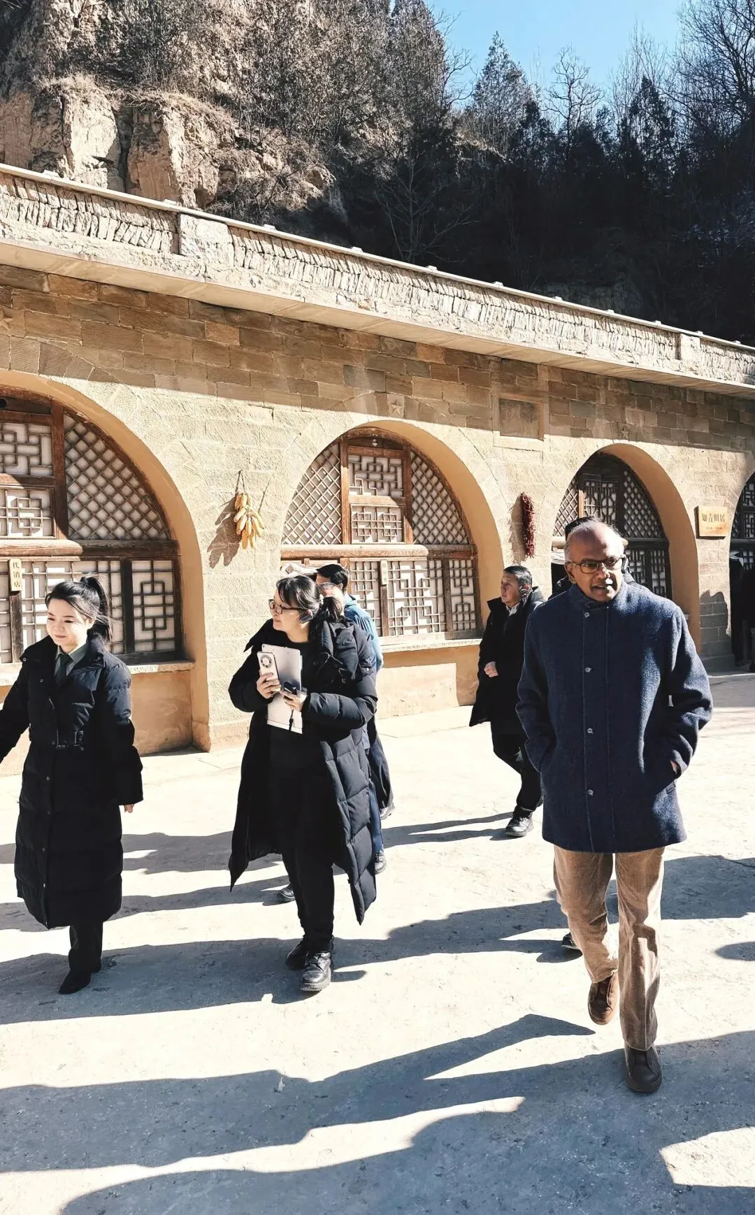 国家安全统筹部长兼内政部长尚穆根(右一)正式访问中国期间,参观了多处对中国近现代发展意义重大的地方,包括延安革命纪念馆。 (取自尚穆根脸书)