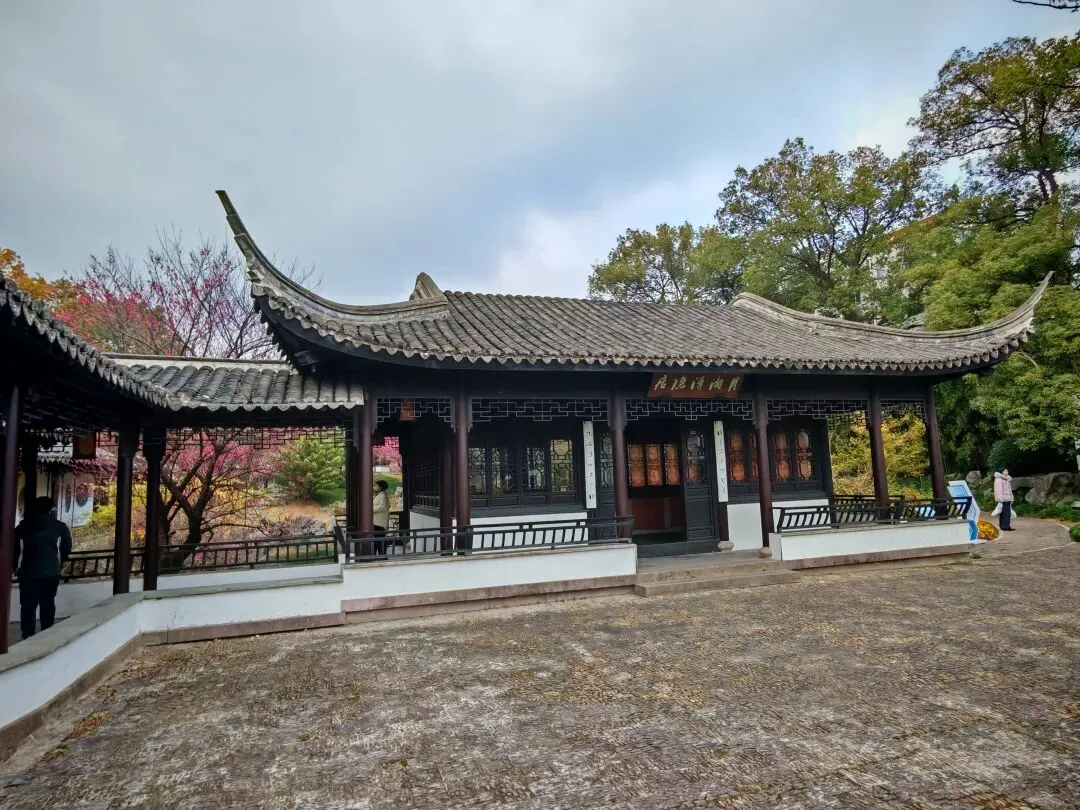 依水山庄外临东湖,内嵌小湖,湖畔缀以小山,花木扶疏、亭台掩映如天然画卷,虽玲珑小巧却布局精妙。