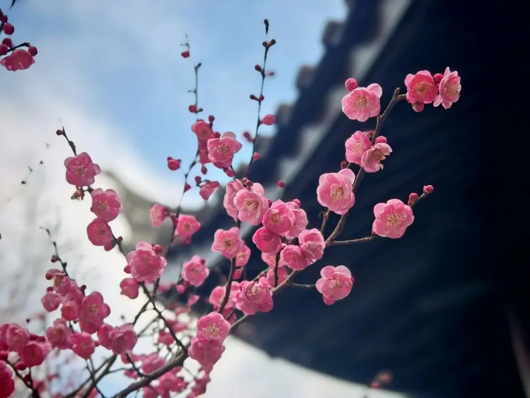 眼下正值东湖最美时节,园内百年梅树竞吐芳华,绯红花瓣缀满枝头,暗香浮动间勾勒出“疏影横斜水清浅”的诗意画卷,给临海古城增添了早春的蓬勃生机,无论是打卡拍照还是漫步寻幽,都是时适地宜。