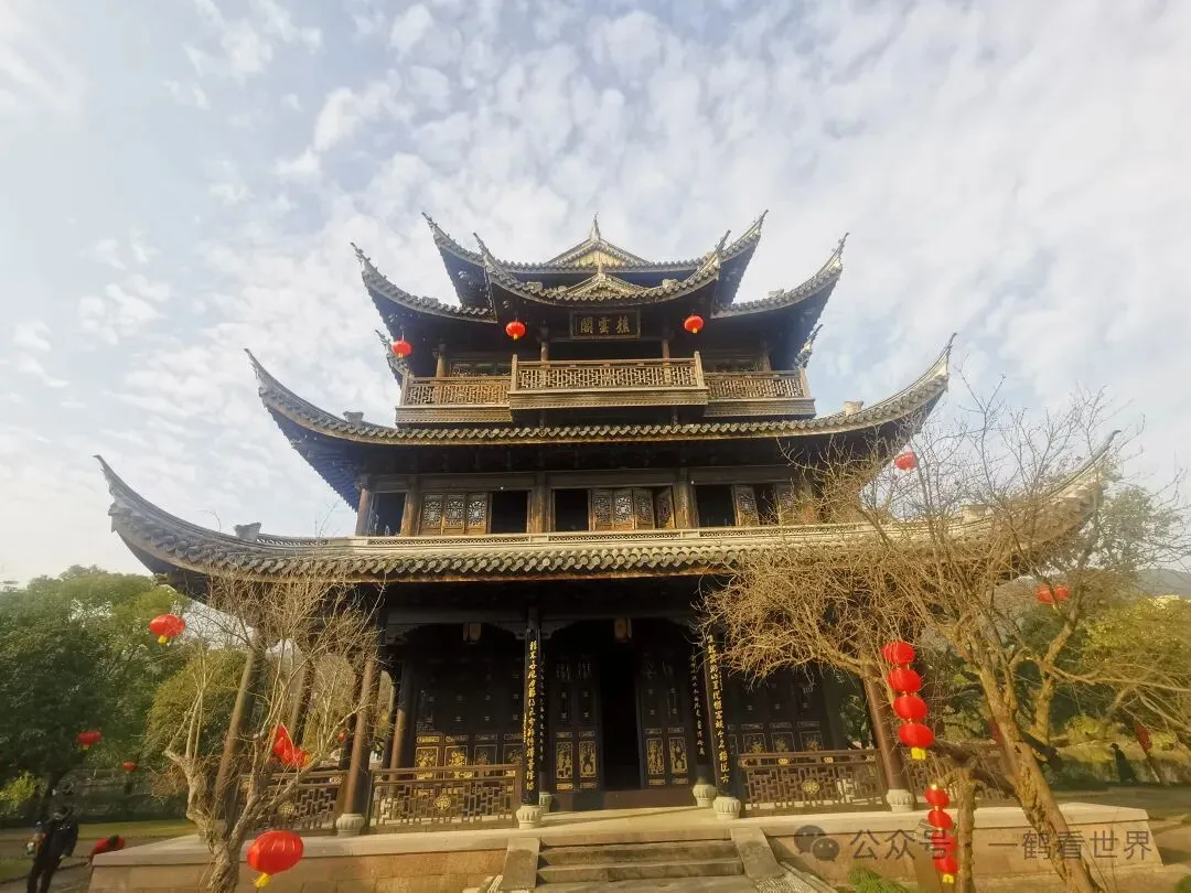 樵云阁四层四角,古雅端庄,巍然矗立,游客可登至二楼凭栏远眺。