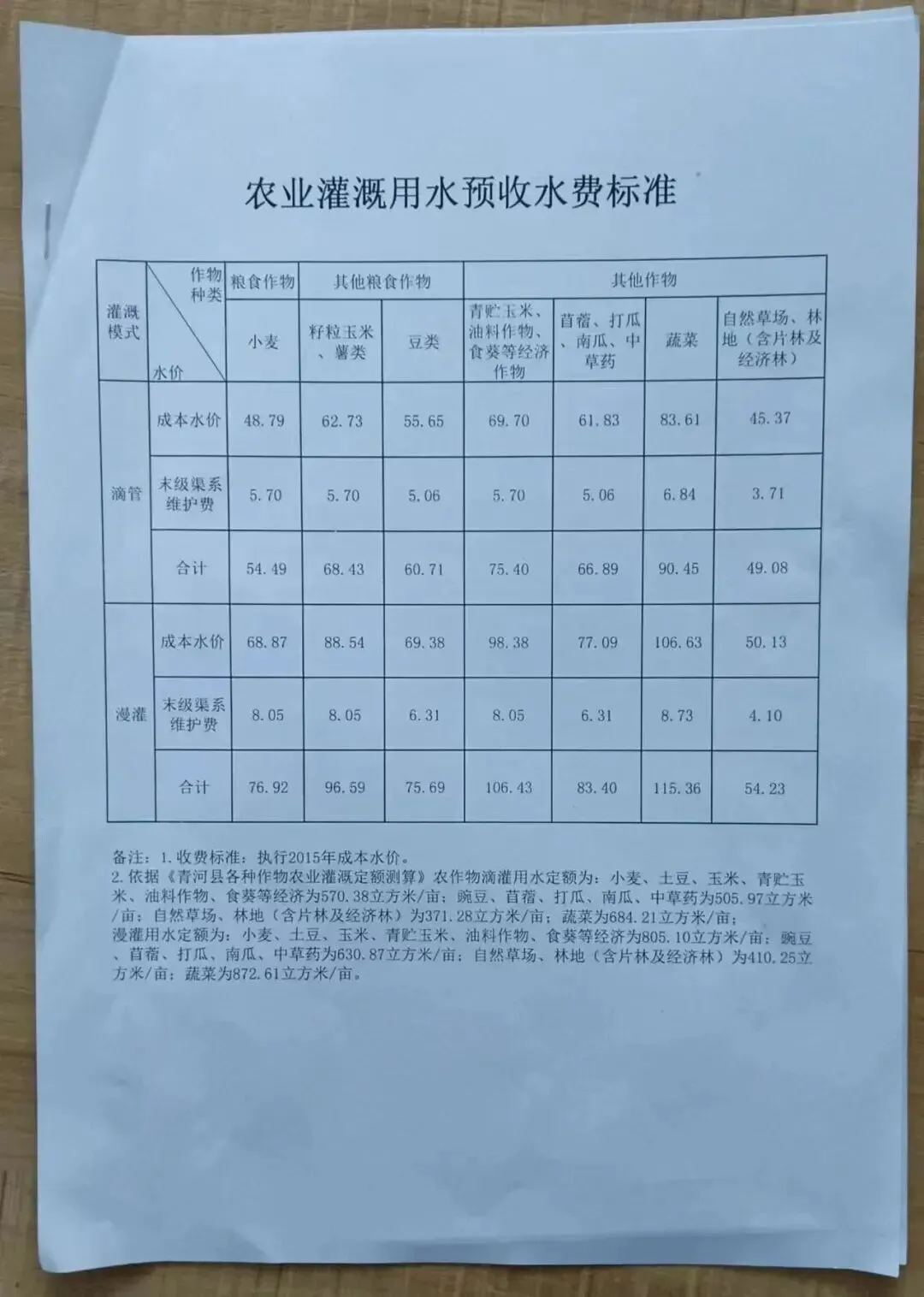 青河县农业灌溉水费标准