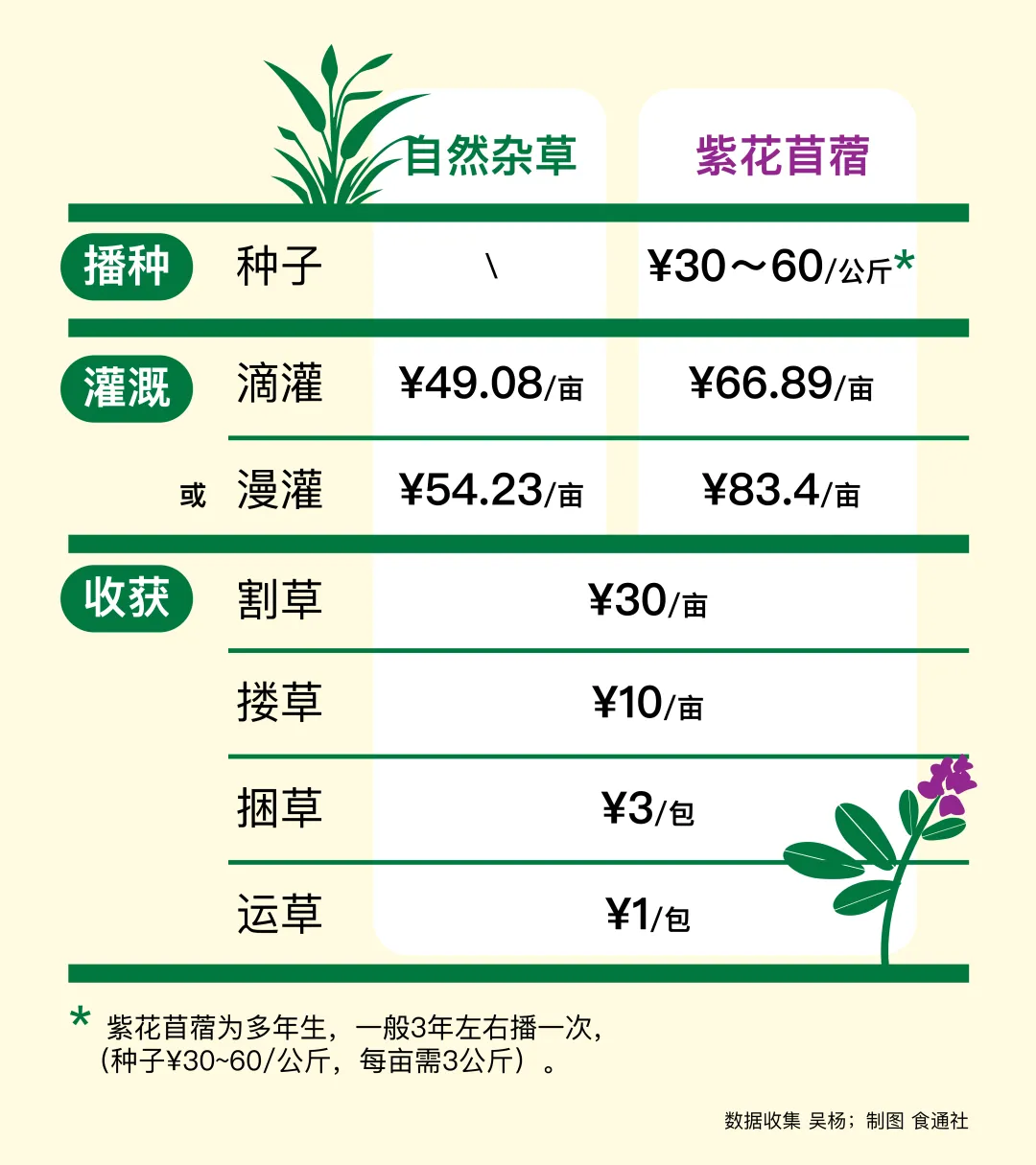 (不含紫花苜蓿的施肥成本)