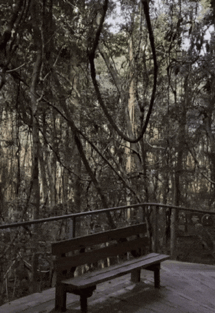 下车后就来到我们的雨林栈道(Scenic Walkway),这条全长2.4公里的木板路非常适合漫步,可以呼吸着充满桉树清香的空气,停下来慢慢观察古老的蕨类植物,运气好说不定还能遇到可爱的琴鸟!