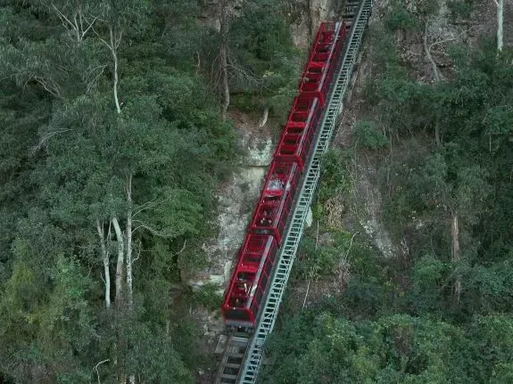 从空中缆车出来后,可以直接来一个刺激加码——选择红色的丛林列车(Scenic Railway)——这可是世界上TOP 1陡峭的载客火车,它将带着你一路俯冲到古老的雨林谷底。