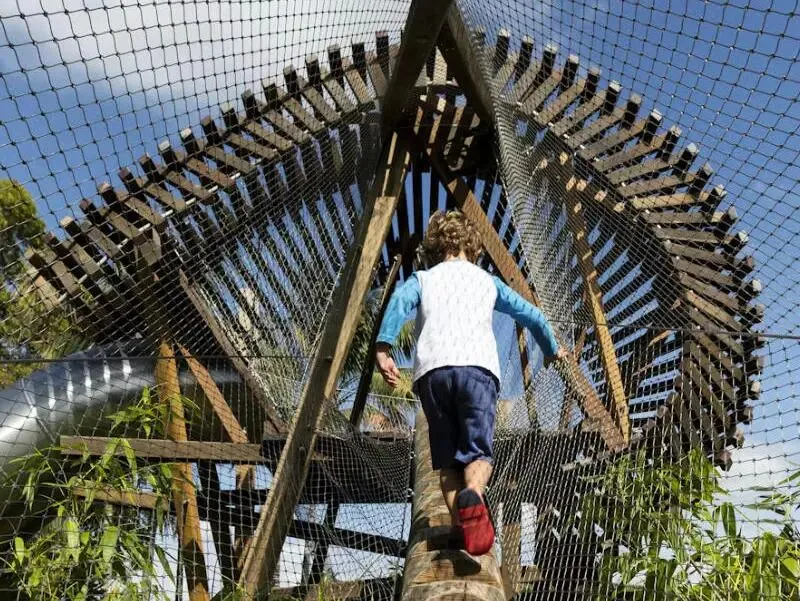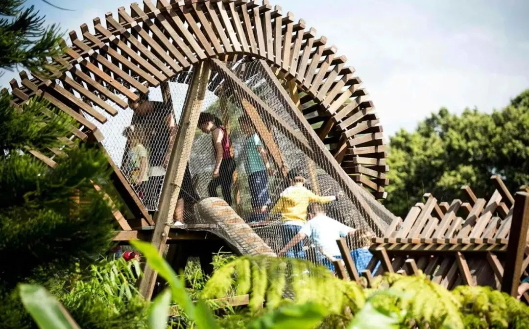重点强推公园里的Ian Potter Children's Wild Play Garden,这里是专为孩子打造的自然探索乐园,各种年龄段和能力的孩子都能玩,包括玩水区域、竹林、木板隧道、小土丘,还有公园树屋,完全把自然元素搬进了玩乐空间。孩子在这里能跑跳、探索,尽情释放天性,还能锻炼胆量、学会独立思考,在更安全的环境下离自然更近一步。
