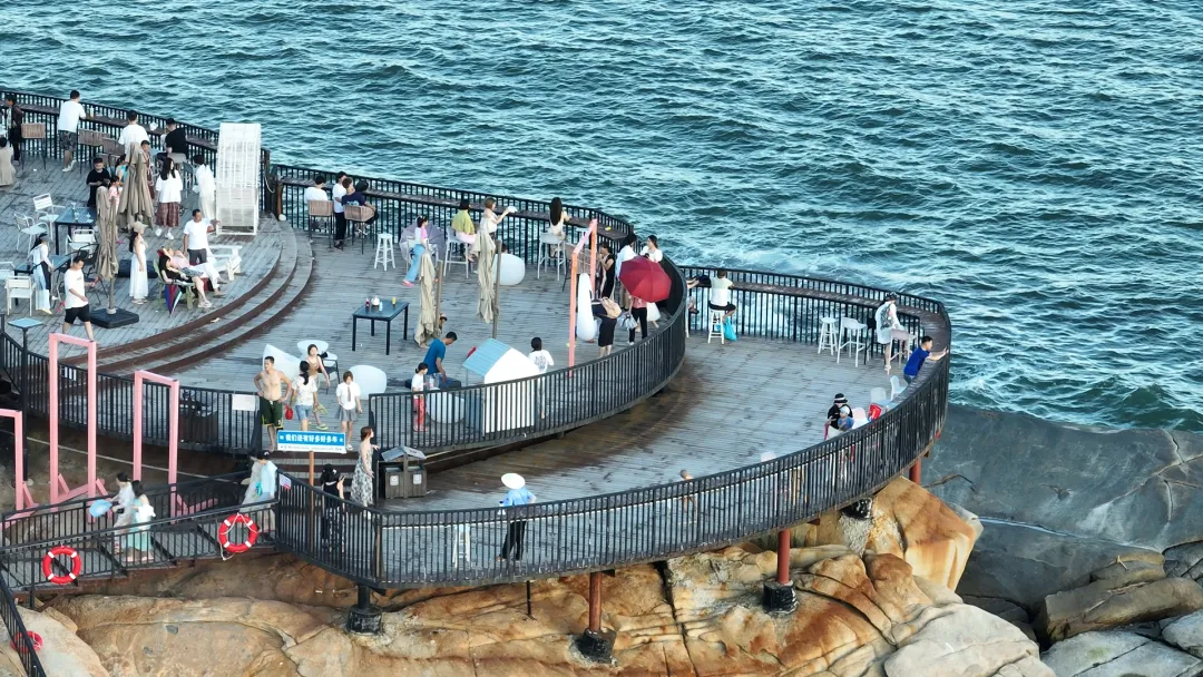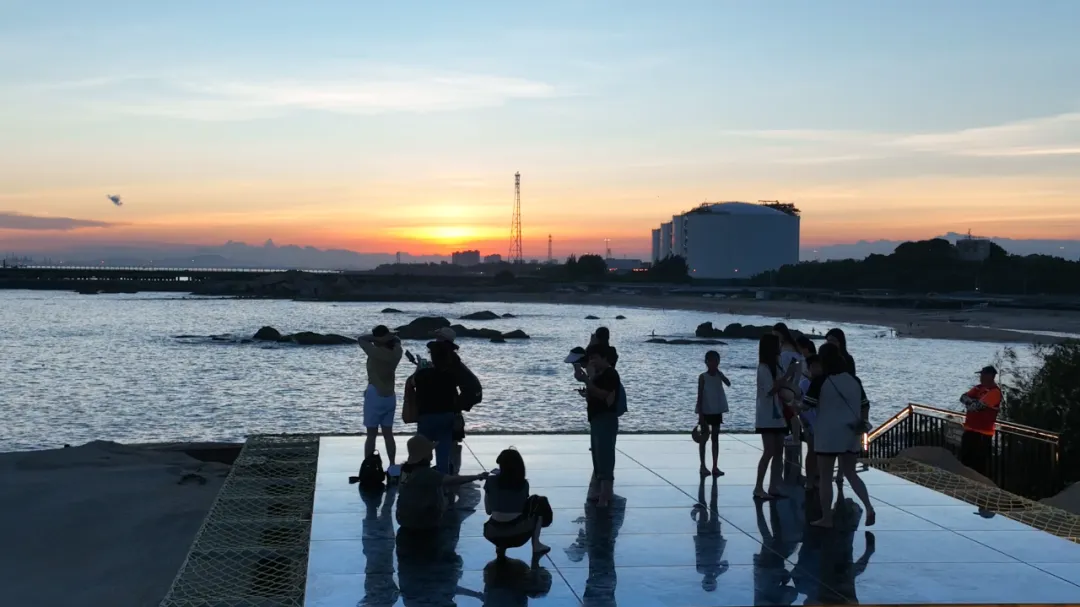 石碑山灯塔高59米,是亚洲第一航标塔。游人漫步于此,仰可观石碑山灯塔、风车之高标直耸,侧可望石化码头如长虹贯日,远眺大海可见波澜壮阔,近伫海岸可赏怪石嶙峋,留步科普宣传廊,可获海权知识的点点滴滴,行走在滨海绿道上,一面是碧水蓝天,一面是绿意盎然的山海美景,海滨风光与绿美生态景观相得益彰。