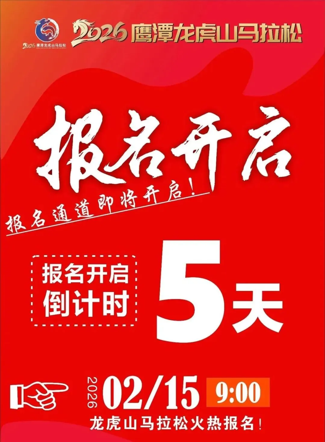 本次赛事定于4月26日鸣枪开跑,升级为全程马拉松(42.195 公里)与半程马拉松(21.0975 公里) 两大竞技项目,2026鹰潭龙虎山马拉松2月15日9:00正式开启报名通道。