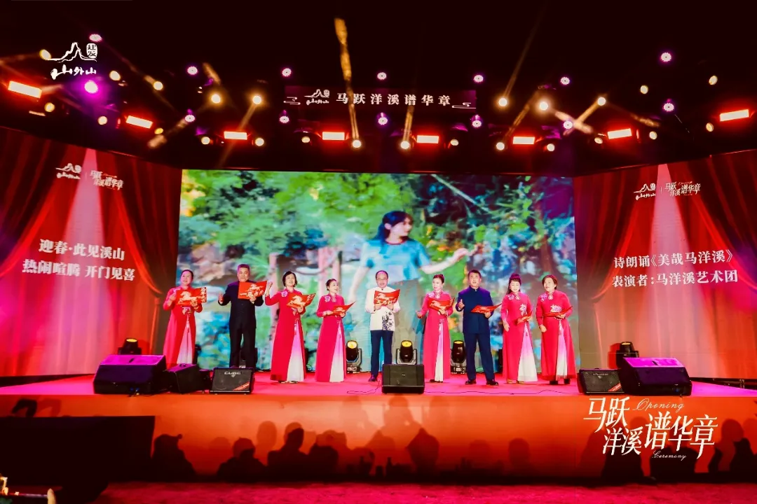 2026年2月7日晚,马洋溪生态旅游区新春晚会暨建发山外山业主春晚在长泰山外山社区举行。在晚会上,马洋溪之声艺术团表演了原创节目诗歌朗诵《美哉马洋溪》和书法展示,该节目由李文刚老师创作,魏小春、李文刚等老师指导,李文刚、魏小春、于巧玲、陈春满、张浩、肖莹、蒋思彬、尚宁、郑鹭虹等9位老师参与朗诵,李小玲老师现场挥毫。