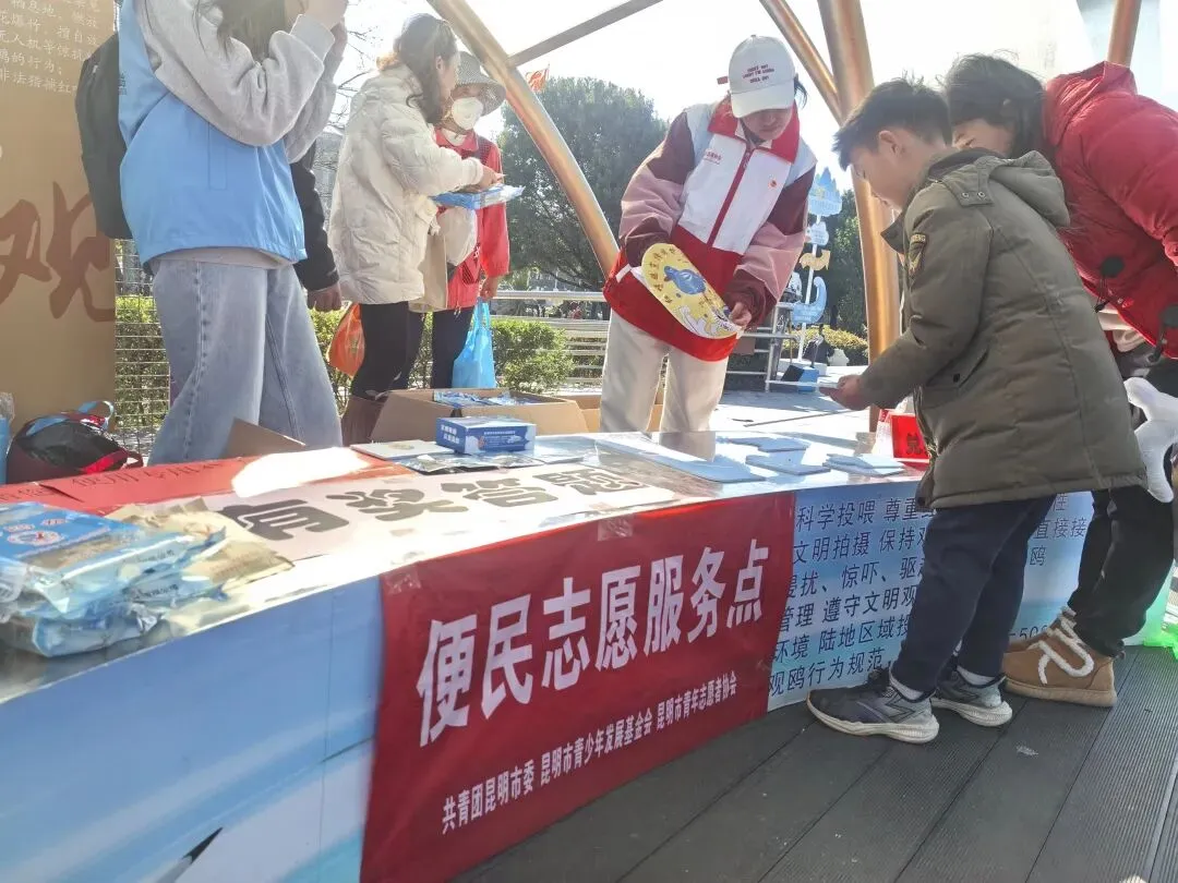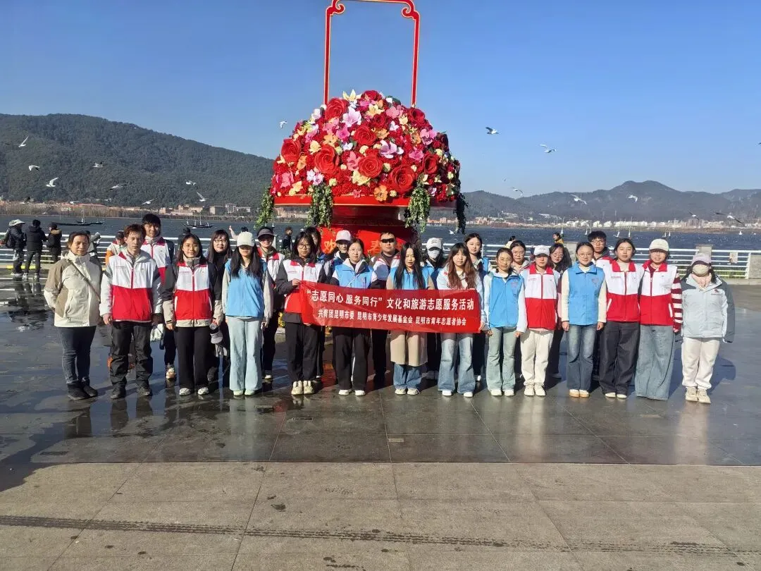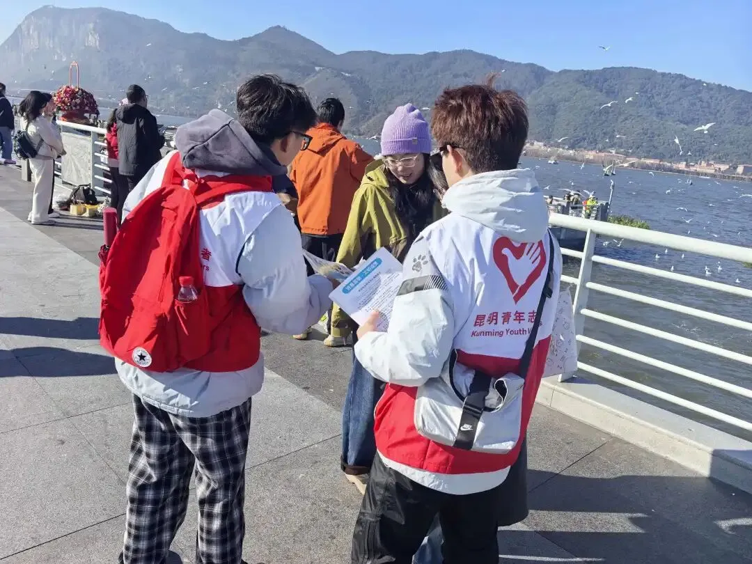 2026年2月10日,春城阳光明媚,海埂大坝上人鸥和谐,笑语盈盈。由共青团昆明市委、昆明市林业和草原局主办,昆明市青少年发展基金会承办,滇池度假区管理委员会、昆明市青年志愿者协会协办的“志愿同心,服务同行”文化和旅游志愿服务活动在这里温暖开展。一群身着统一服装的青年志愿者,以热情的服务、文明的引导,为春城文旅增添了一抹亮丽的志愿风采。