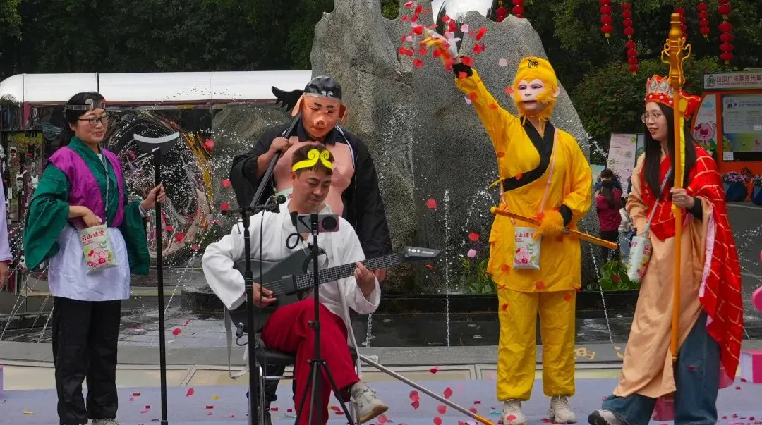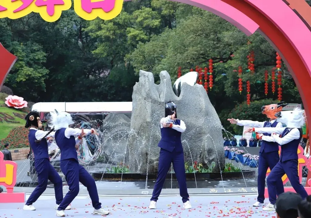 本次联欢会尽显新意,深度解锁两大亮点:一是首次将迎新春职工联欢会设在山顶广场的“群众大舞台”,打破了传统室内模式,让职工表演与登山游客互动共享,山水相映间趣味横生,节日氛围愈发浓厚;二是本次联欢会的表演内容极具新意,从领导班子倾情演绎的舞蹈《八方来财》,到各部门、第三方公司及经营点带来的歌曲、小品、相声和拳术等十六个精彩节目,再有全员参与的趣味游戏、抽奖及大合唱,现场欢声笑语不断,吸引了众多游客踊跃参与。