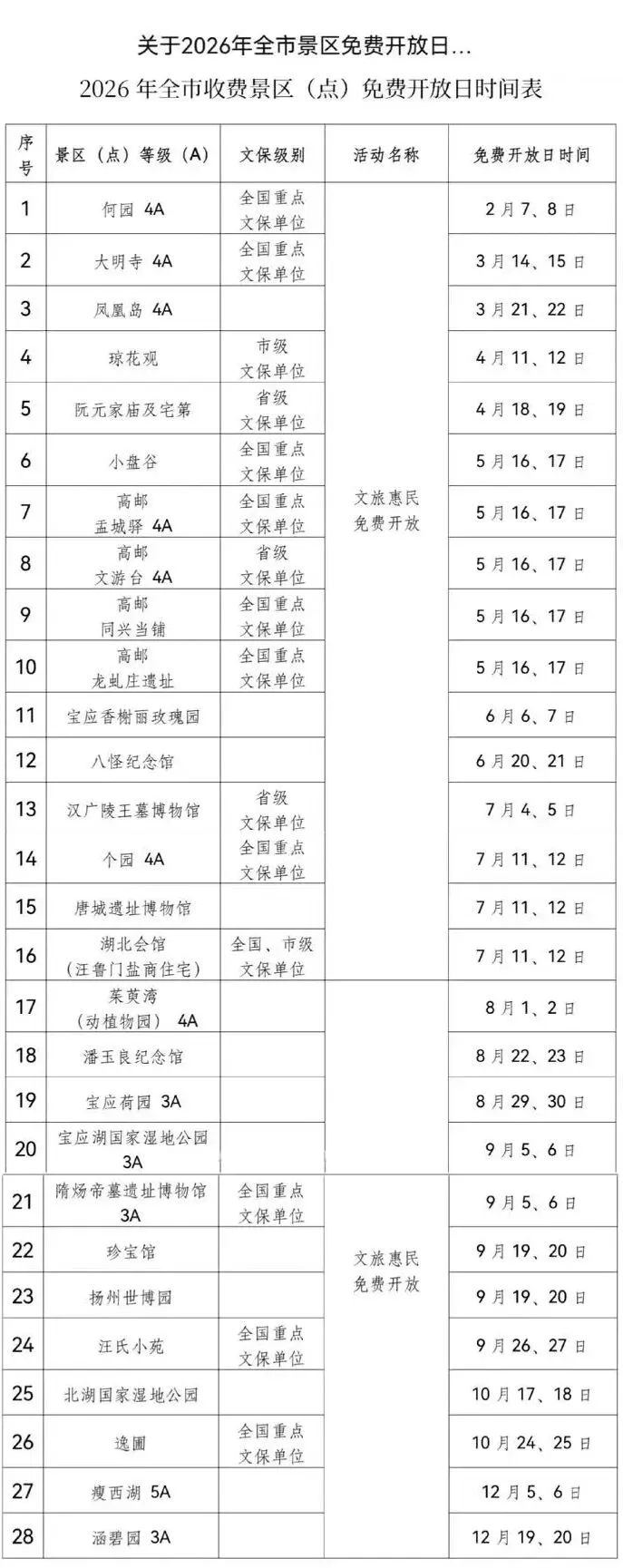 太香了!景区免费开放日公布,全年可享