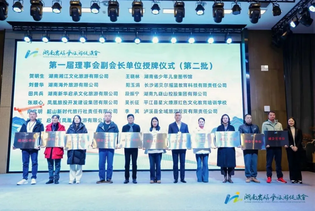 湖南九嶷山控股集团有限公司成功当选副会长单位,集团副总经理段振宁同志当选为促进会第一届理事会副会长,任期五年,并现场获授副会长牌匾,这是行业对集团深耕研学旅游领域的高度认可与肯定。