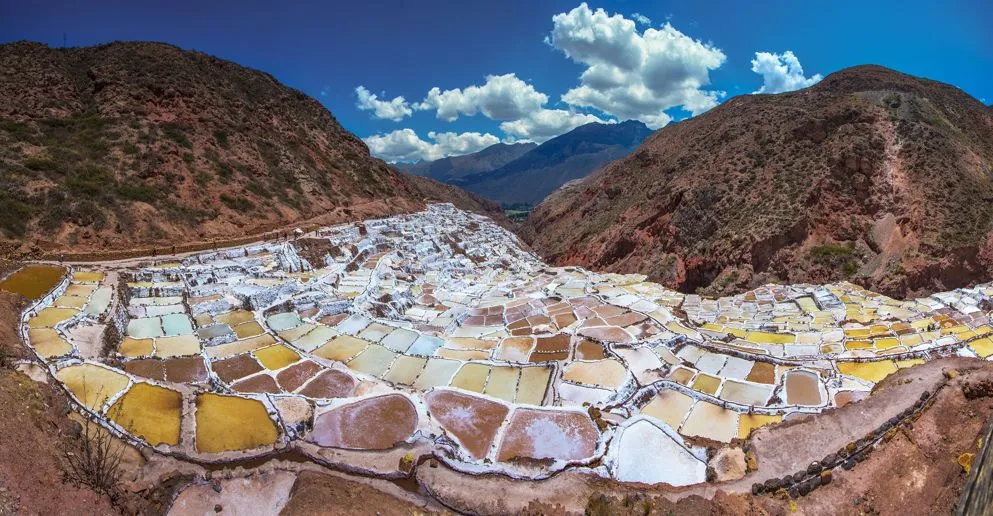 位于圣谷的马拉斯盐田,当你乘坐汽车在山谷之中行驶时,远远望去,你会发现,这就像造物主把巨型调色板挂在了山间。