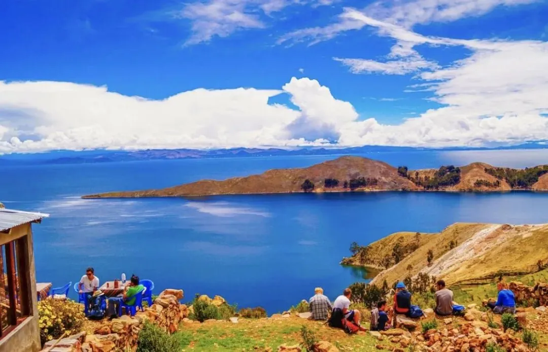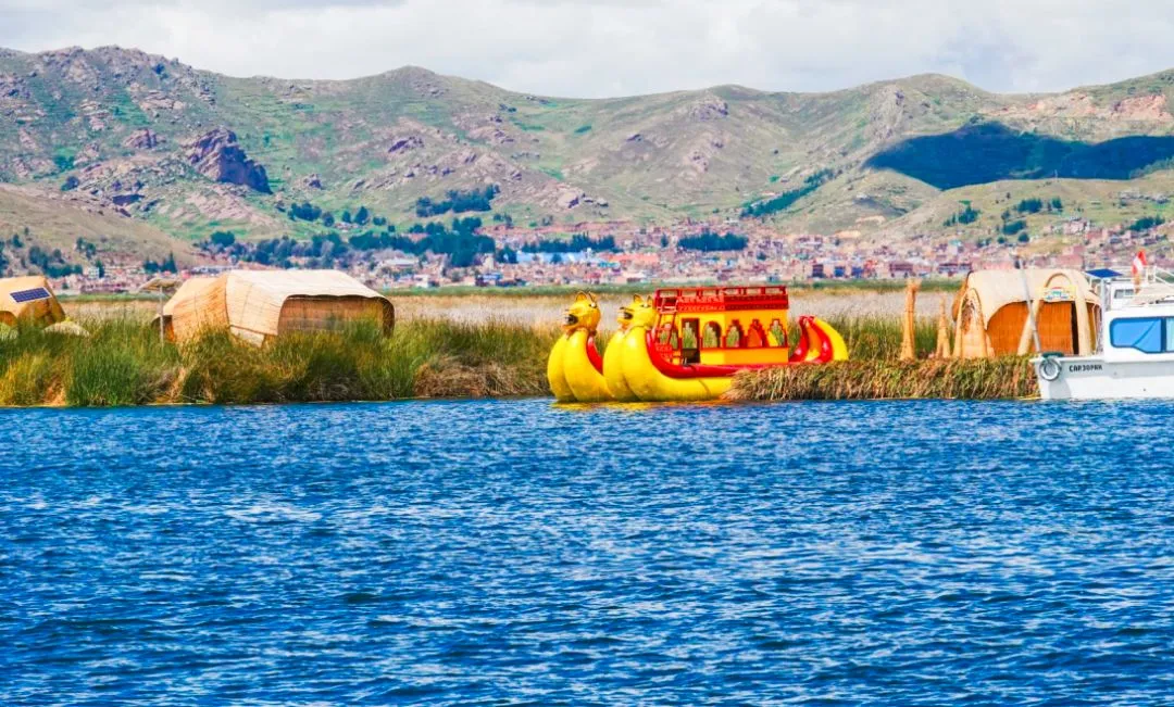 提提喀喀湖一半在秘鲁,名为“TITI”,一半位于玻利维亚,名为“KAKA”,坐芦苇船也是必不可少的体验,
