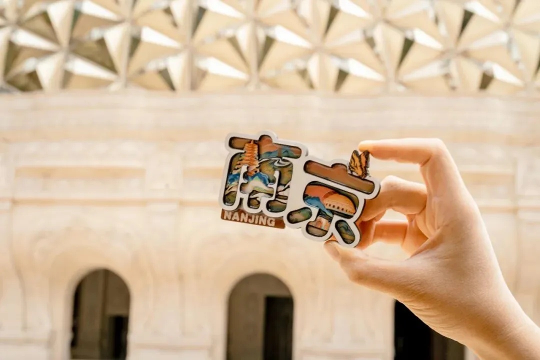 “葫芦”形状的冰箱贴,寓意福禄,小巧精致。佛顶宫和佛顶塔的两大元素,被巧妙地安放其中。 “南京”款冰箱贴,则加了独一味的中华虎凤蝶,摇曳生姿。