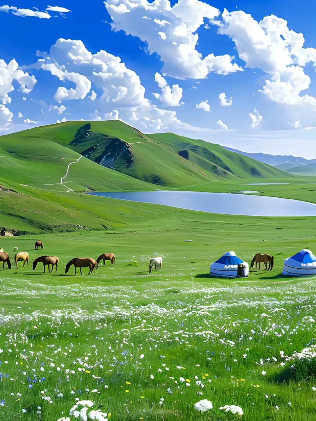 不是所有草原都能叫 “天下第一草原”!这片 5A 景区的美,在于它的一望无际与生机盎然。沿着莫尔格勒河自驾,看 “天下第一曲水” 蜿蜒在绿毯般的草原上,走进牧户家喝奶茶、套马杆,夜晚住进星空蒙古包,听草原的风声与马头琴声交织。夏天看野花铺满地,秋天看草原染成金褐色,每一季都有不同的辽阔之美。