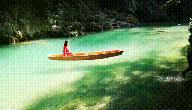 18公里长的屏山大峡谷里,藏着一条蓝到发绿的碧玉河,船行其上如在空中悬浮,美到不可思议,也因此屏山有了“中国仙本那”的美称。