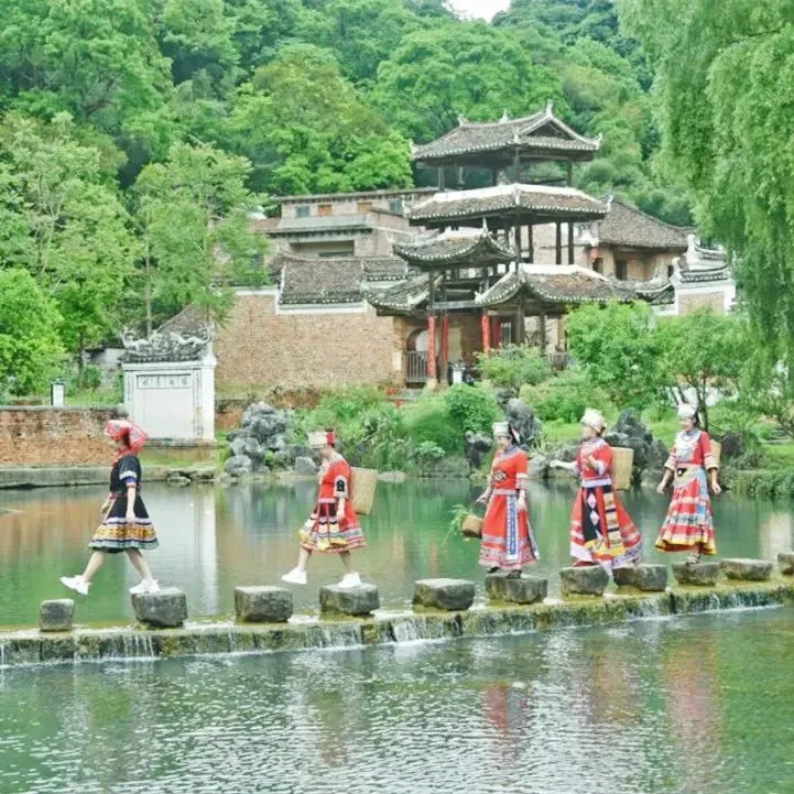 距离鹅泉40多公里有个渠洋湖,它被称为“水上桂林”。 这是一个大型的喀斯特高原湖泊水库,水中十几座独峰错落突兀,在破晓黄昏时,水面如纸,霞光如笔,肆意挥毫,留下了一个个柔美诗意的画面,穷尽了外国人对中国山水的所有想象。