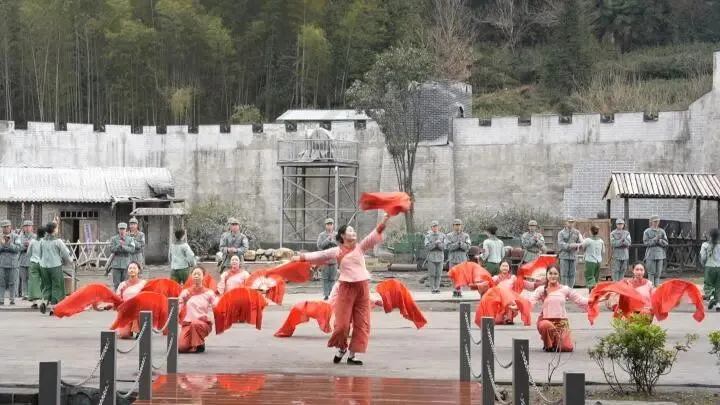 走进六万情峡景区,开场舞青春洋溢、活力四射,瞬间将游客带入欢乐祥和、年味十足的节日氛围之中。景区王牌实景演出《大别山传奇》正进行最后的紧张排练与细节磨合,将以全新编排重磅登场,为游客带来沉浸式、高品质的视听盛宴。