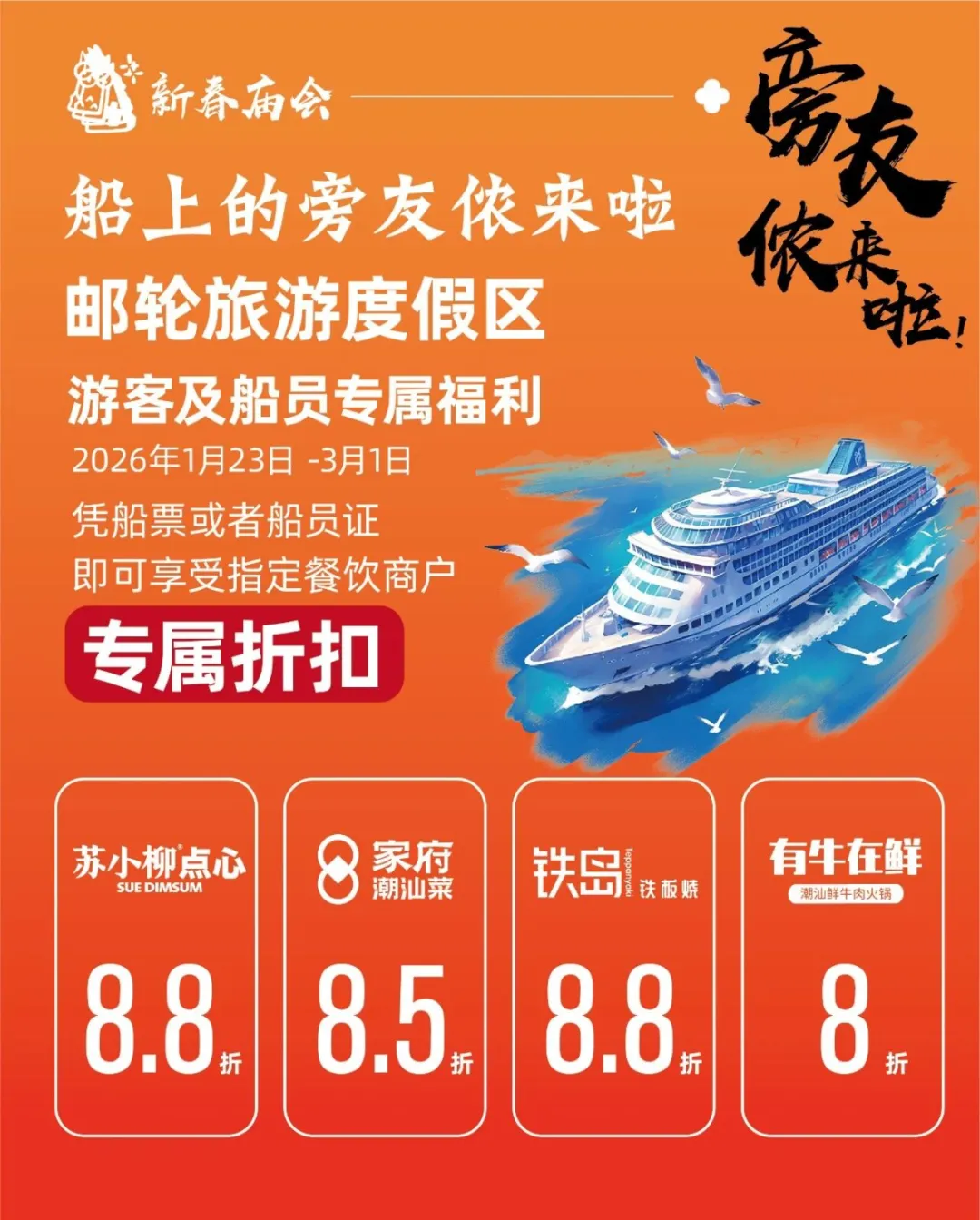您现在的位置是:首页 > 国内旅游目的推荐 > 正文 国内旅游目的推荐 旁友侬来啦!邮轮旅游度假区专属福利大放送 admin2026年02月10日 23:57:25国内旅游目的推荐9 旁友侬来啦!邮轮旅游度假区专属福利大放送往期推荐宝山这3座公园大中修焕新亮相!抱树搭子、拍爱情云!宝山滨江的新年,从一个抱抱开始~|在宝山过大年多项精彩文旅项目齐发布!新春一起来宝山“寻宝”→编辑:陆天宇资料:区商务委*转载请注明来自上海宝山官方微信 转载请说明来源于"旅荐网",部分内容转载自网络,如有侵权请联系qlwl@foxmail.com删除 本文地址:https://www.15386.cn/post/100914.html 上一篇 2026“陕北榆林过大年”暨冰雪旅游促消费活动正式启动 下一篇 灵石县文化旅游投资发展有限公司春节临时用工招聘 相关文章 周末周边行,央视热播剧取景!老友记们的游玩攻略来了! 《“十五五”文化和旅游发展规划》四大编制使命 新能源车出游指南:老司机的10个实用建议 腾冲四季旅行攻略:本地人带你玩转极边第一城 2026年春节去大理旅游地图路线攻略看过来 山西晋城五天四晚小众路线旅游攻略 旅行攻略 | 赴一场春日的幸运之约(文末含兑换码) 腾冲四季旅行攻略:本地人带你玩转极边第一城 3-5\7️福建旅游攻略已做好!姐妹们码住 越南清化省海进海滩超详细旅行攻略 发表评论 取消回复 评论列表 这篇文章还没有收到评论,赶紧来抢沙发吧~