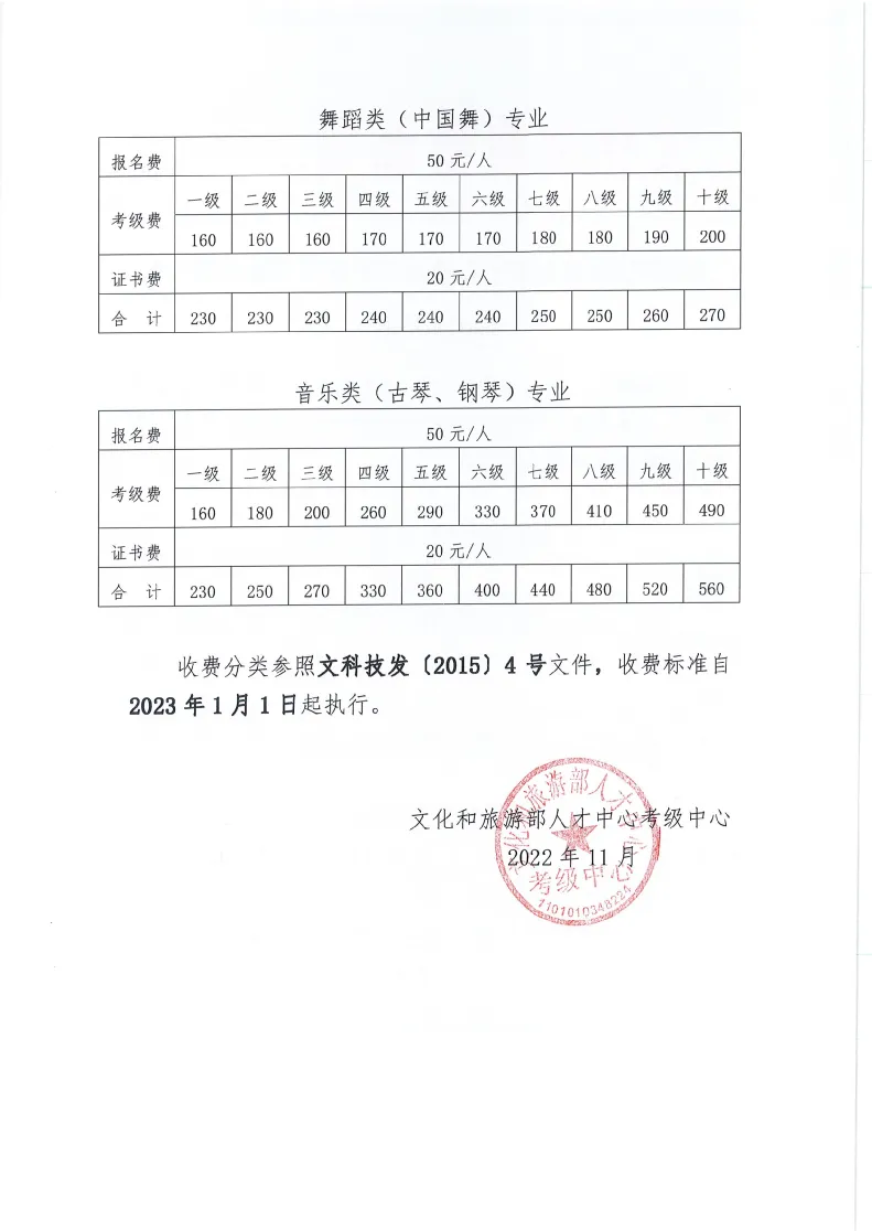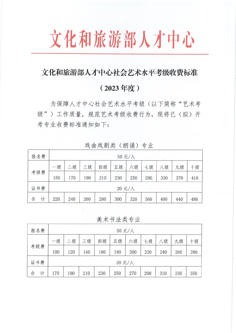 文化和旅游部人才中心艺术考级收费标准