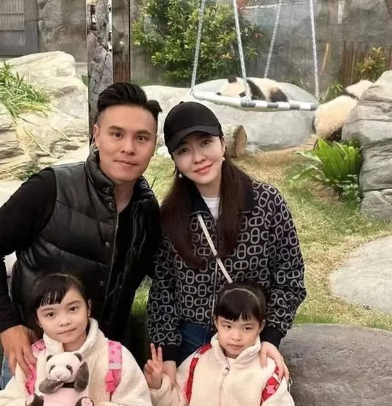 45岁熊黛林带全家旅游,俩女儿尴尬期颜值堪忧,老公全程宠溺