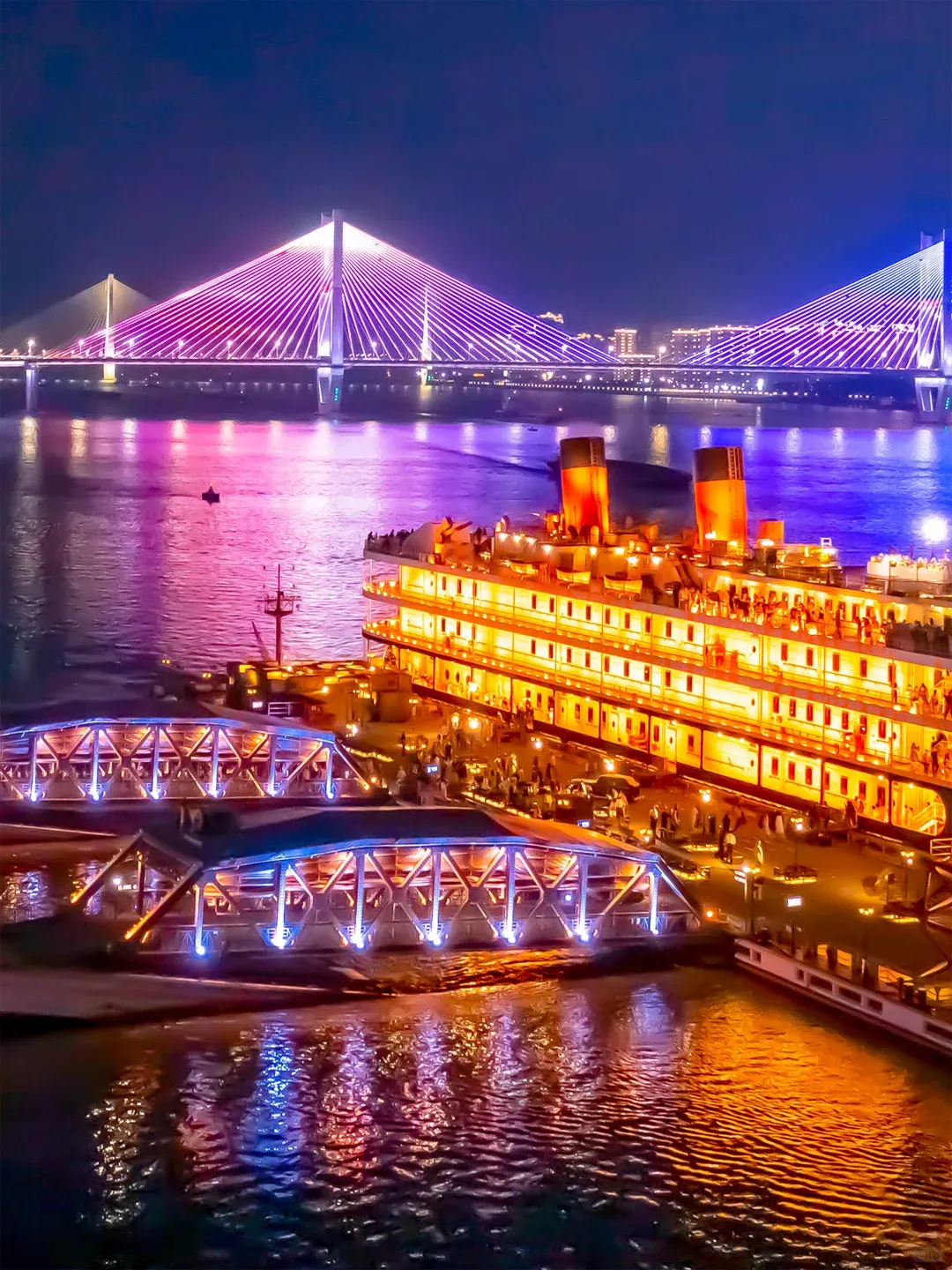 懒得挤地铁,就坐轮渡,中华路码头到汉口江滩,江面一走,夜景自己会讲故事。