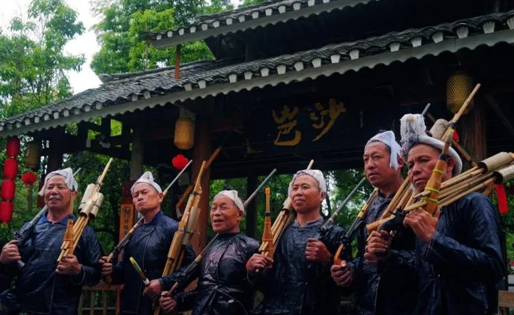 日本游客盯着的就是这个, 这套完整保留下来的仪式系统, 这种把人的一生用具体动作和符号串起来的方式, 在日本明治维新之后基本消失了, 武士髻没了, 和服日常穿的人少了, 很多仪式简化成了象征性的动作, 但岜沙还在用最原始的方式活着, 男人背火枪, 女人穿百褶裙, 每个环节都有讲究, 每个讲究背后都有一套说法。
