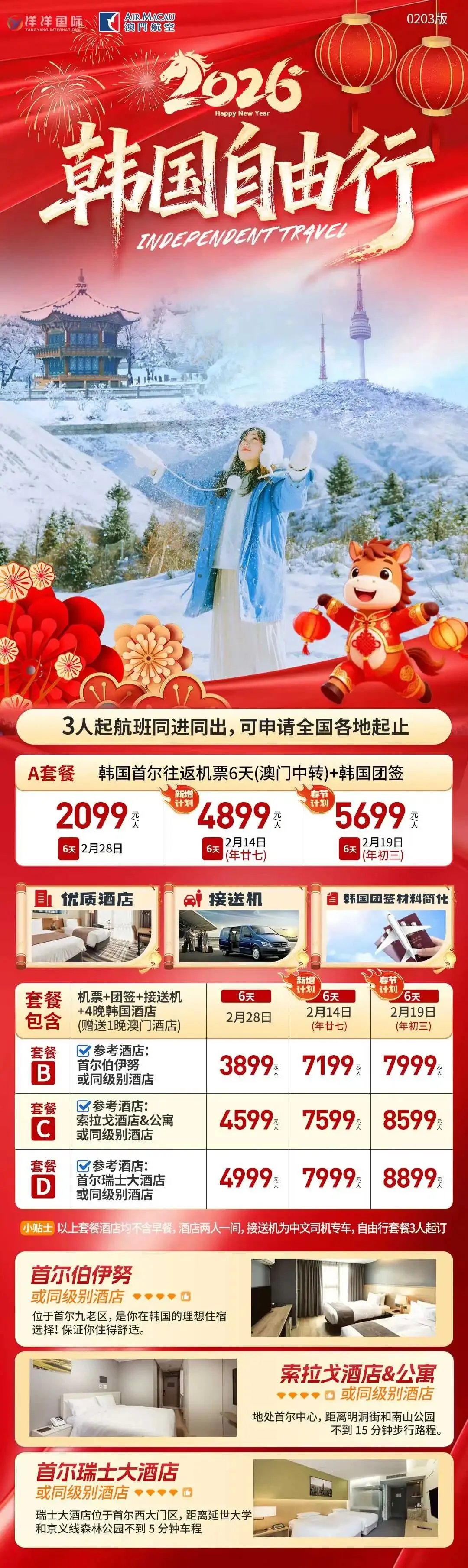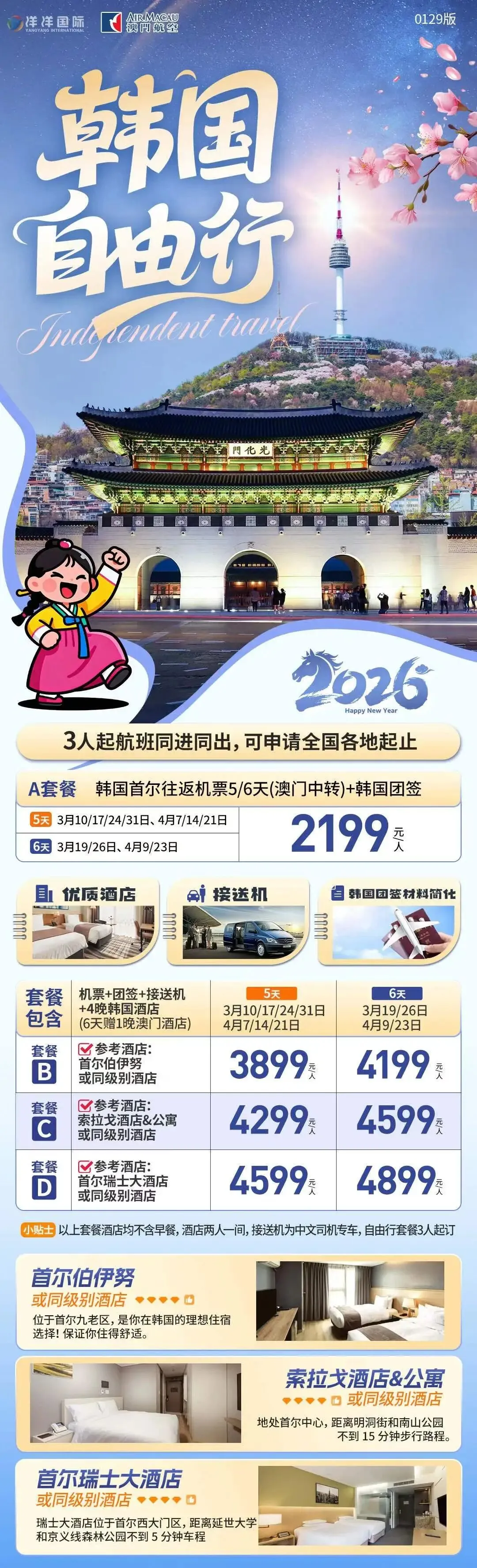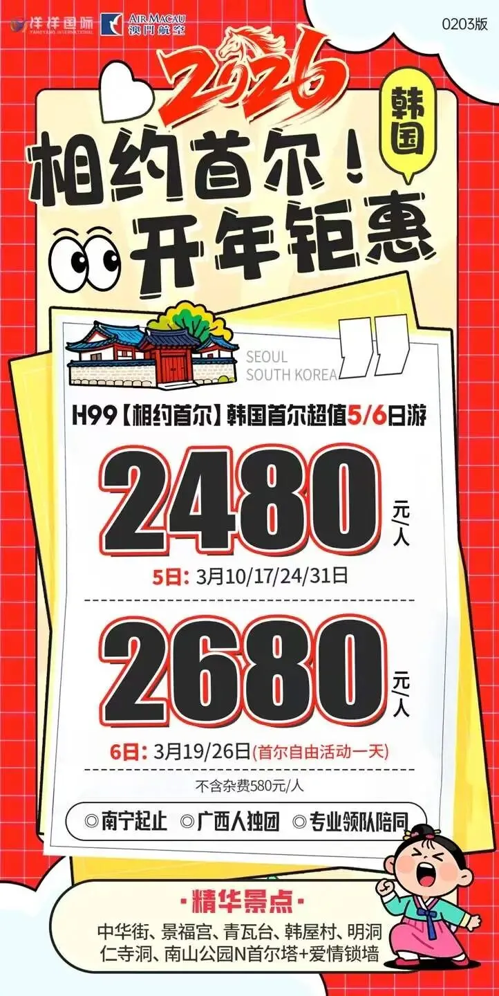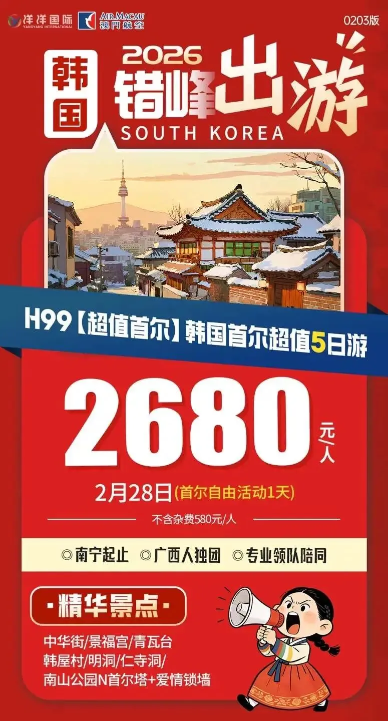 错峰出游【韩国】2-3月 韩国首尔旅游线路推荐 报名优惠!