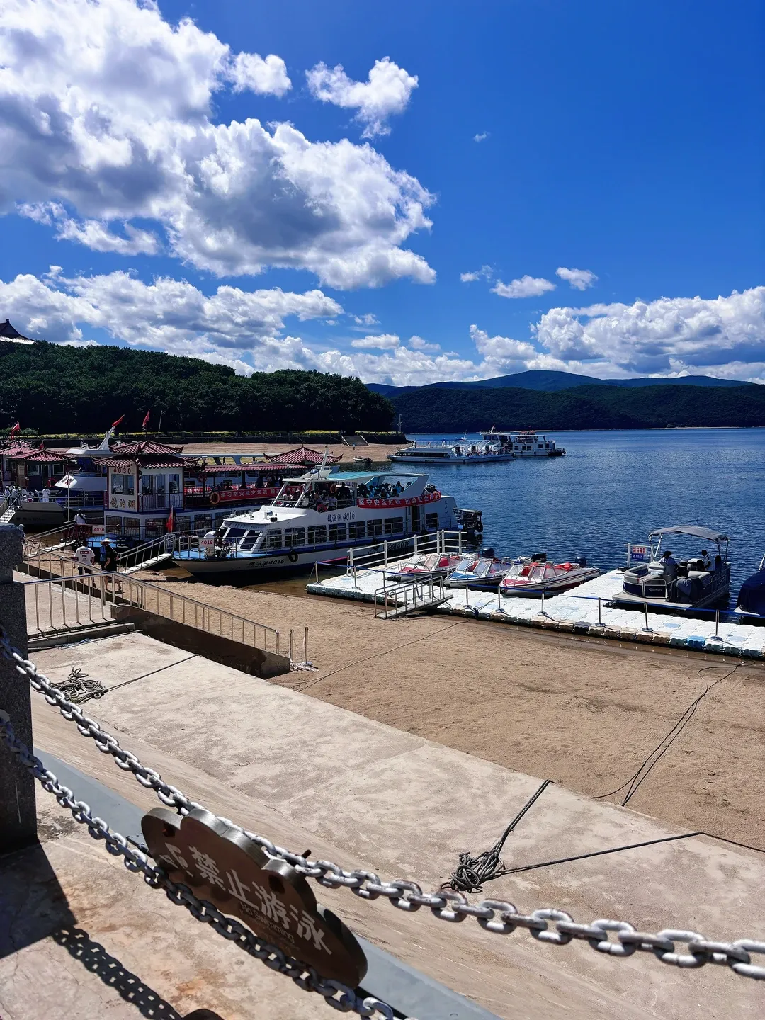 镜泊湖真给力,门票说免就免,原来要八十,现在抬脚就进。