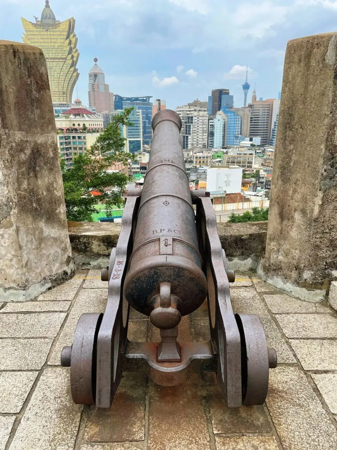 澳门大炮台(又名圣保禄炮台)是中国现存最古老的西式炮台建筑群之一,是澳门军事历史的见证。俯瞰老城全景,夕阳拍照绝美。