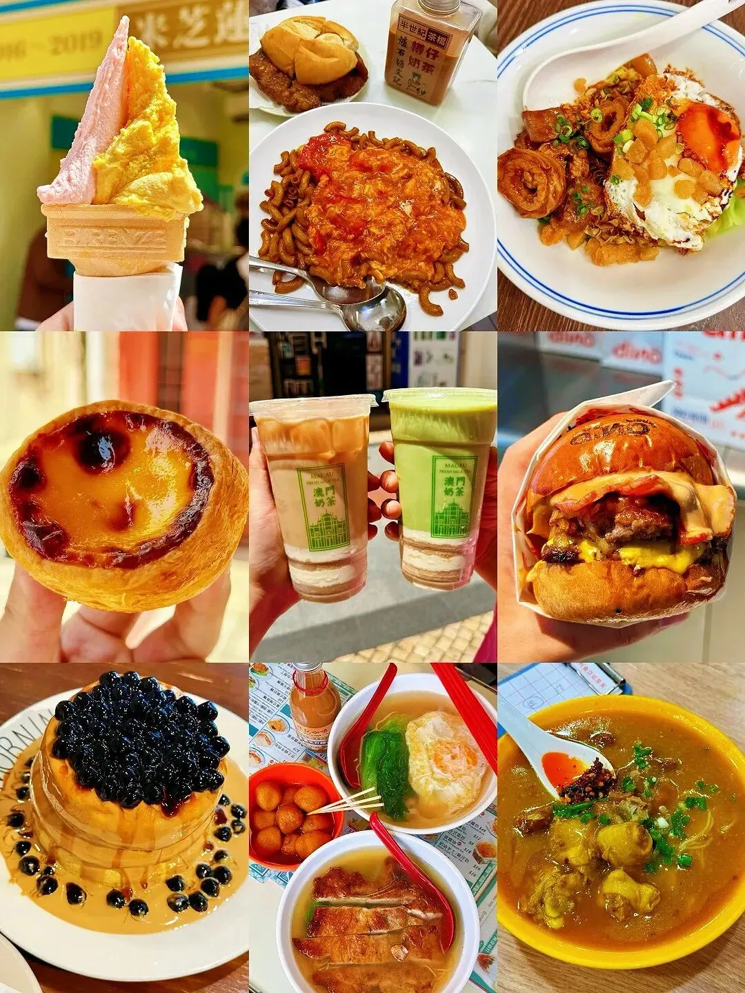 葡式蛋挞、猪扒包、虾籽捞面、内馅嫩滑、葡国鸡、葡式海鲜饭、水蟹粥、 木糠布甸、非洲鸡、咖喱鱼蛋等