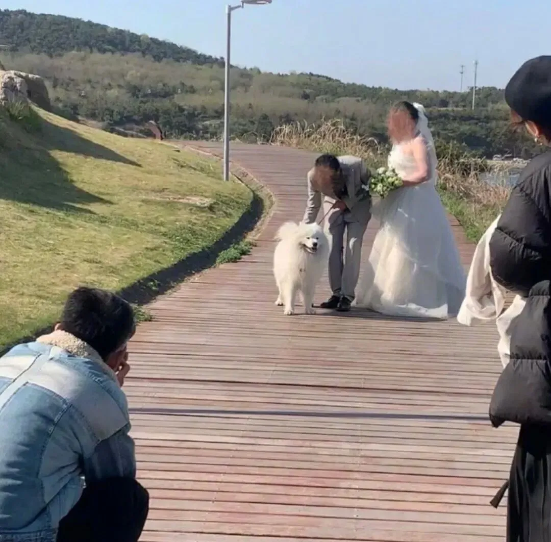 带萨摩去旅游却被路人借去拍婚纱照,耶耶:家人们谁懂啊!