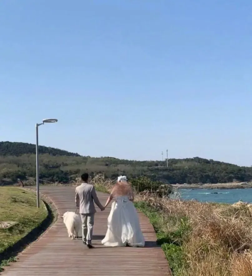 到连三岛的时候 , 好多人在拍婚纱照 , 有个摄影师一眼就相中了小萨 , 说能不能借来拍两张 , 主人也爽快 , 直接答应了 , 然后狗子就这么被"征用"了!
