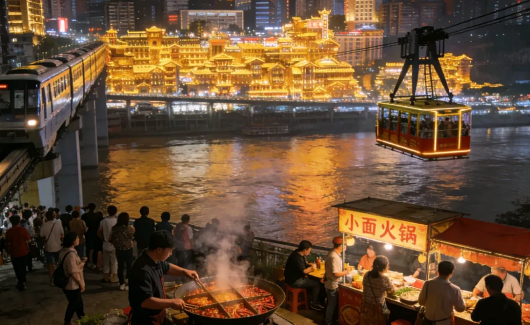 8D立体魔幻城市,轻轨穿楼、长江索道、洪崖洞夜景封神。火锅小面一路吃到底,夜景与烟火气双在线。