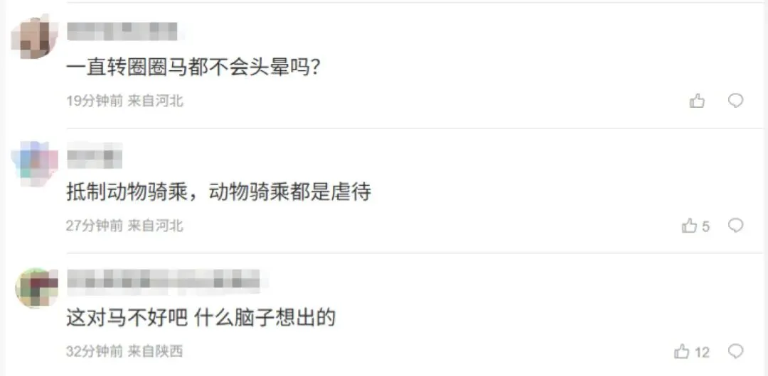 2月10日,有媒体报道“西安一景区旋转木马升级成旋转真马”,引发网友关注。因该项目的6匹真马被固定,围着一处轴心反复转圈,有网友质疑“虐待动物”“对马不好”。