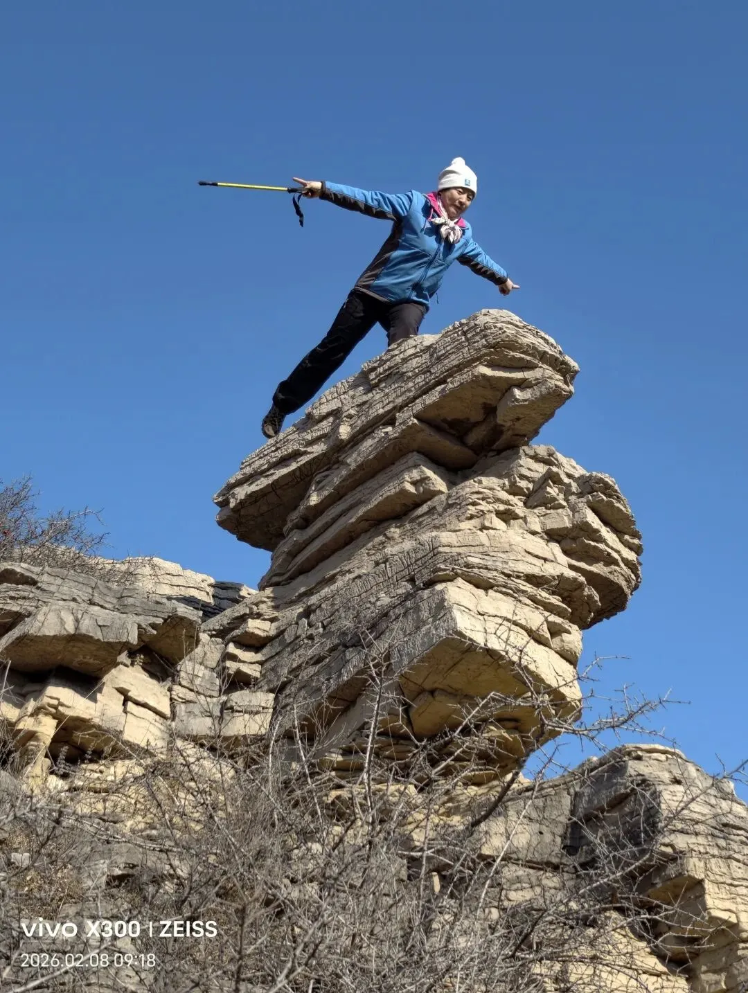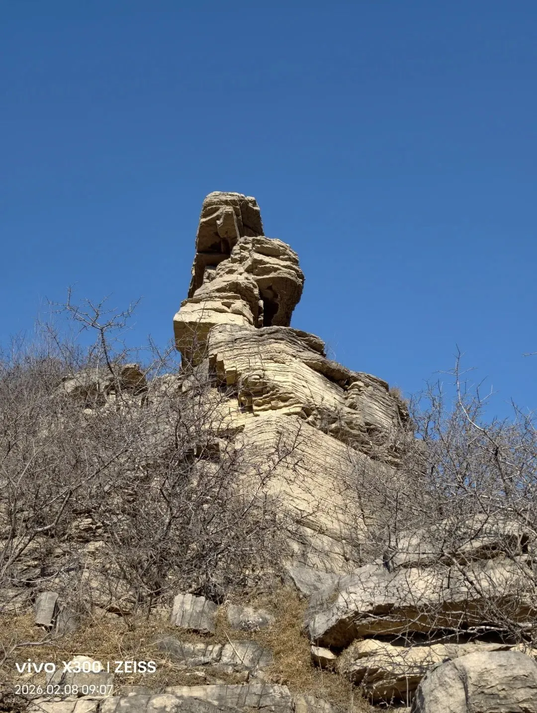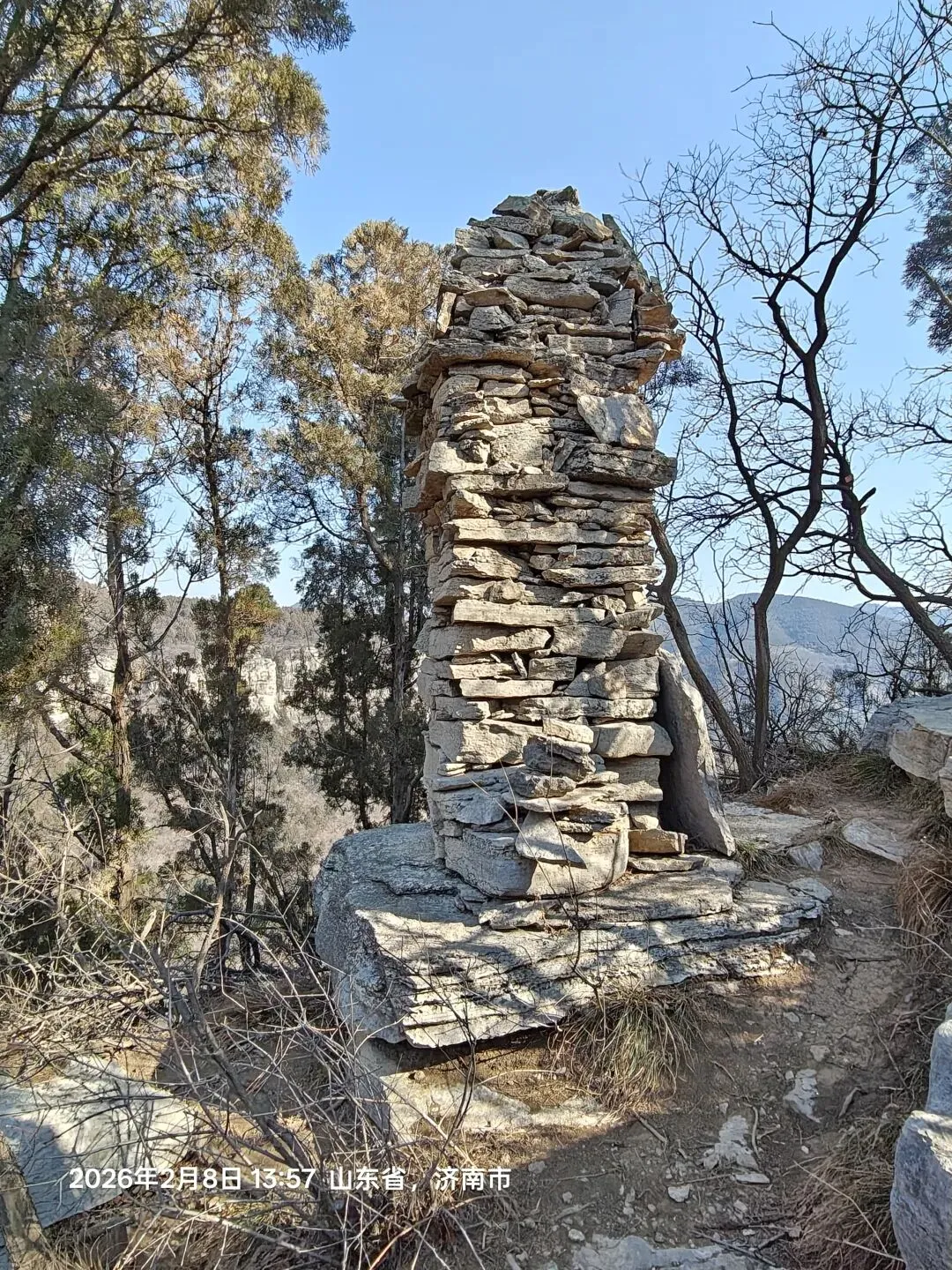2026年2月8日,周日,天气晴好。继续实现每周一山的户外活动,本次计划路线为:小岭村-石老人-八仙桌-藏龙涧-天坑-藏秀塔-老龙头-黑峪大饭店-官山撅-小岭村环线穿越。