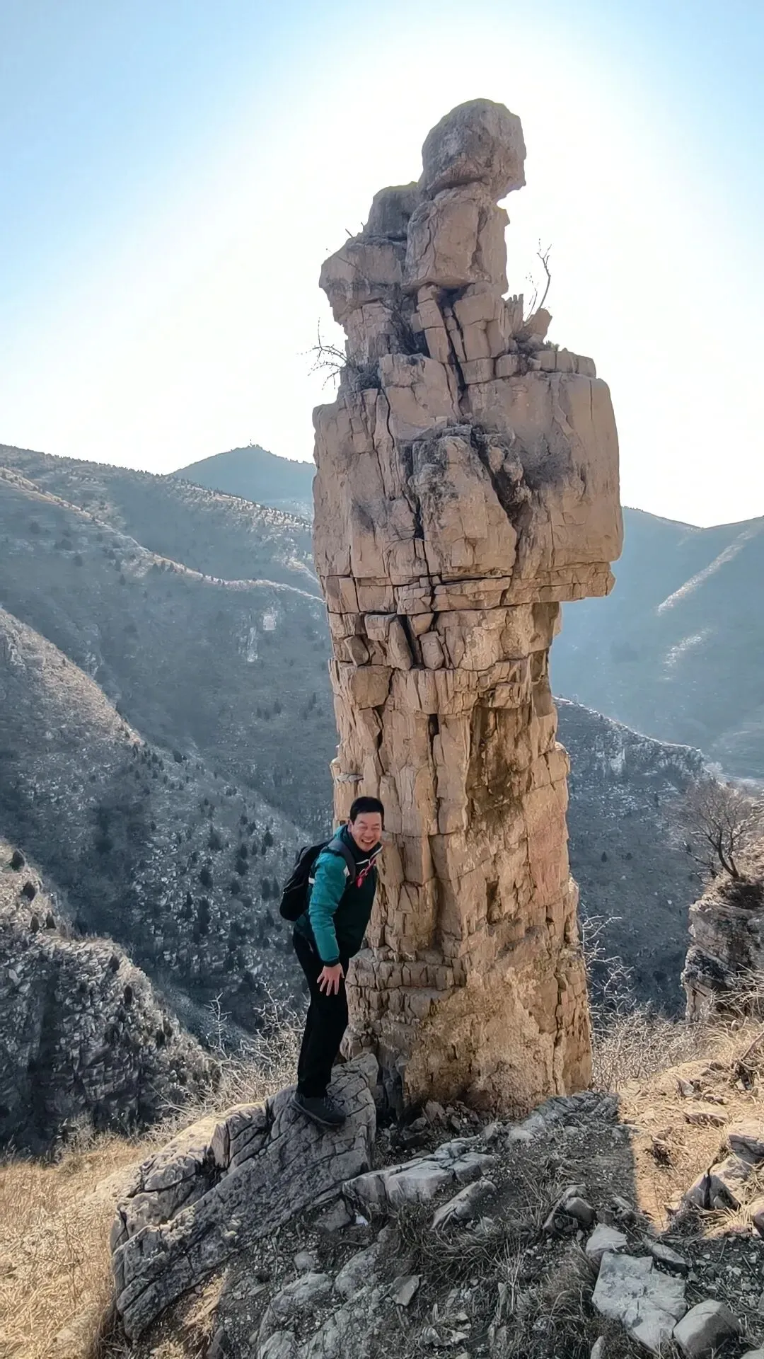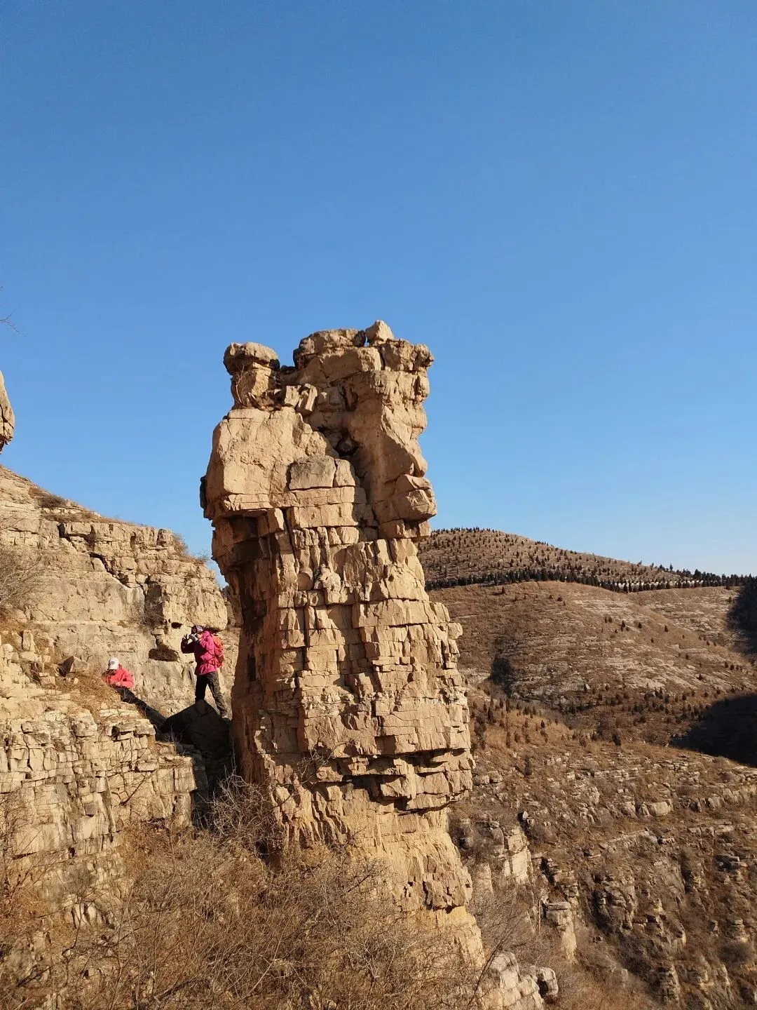 天坑打卡后,沿悬崖南行,大约半小时左右到达藏秀塔,继续前行就是老龙头。