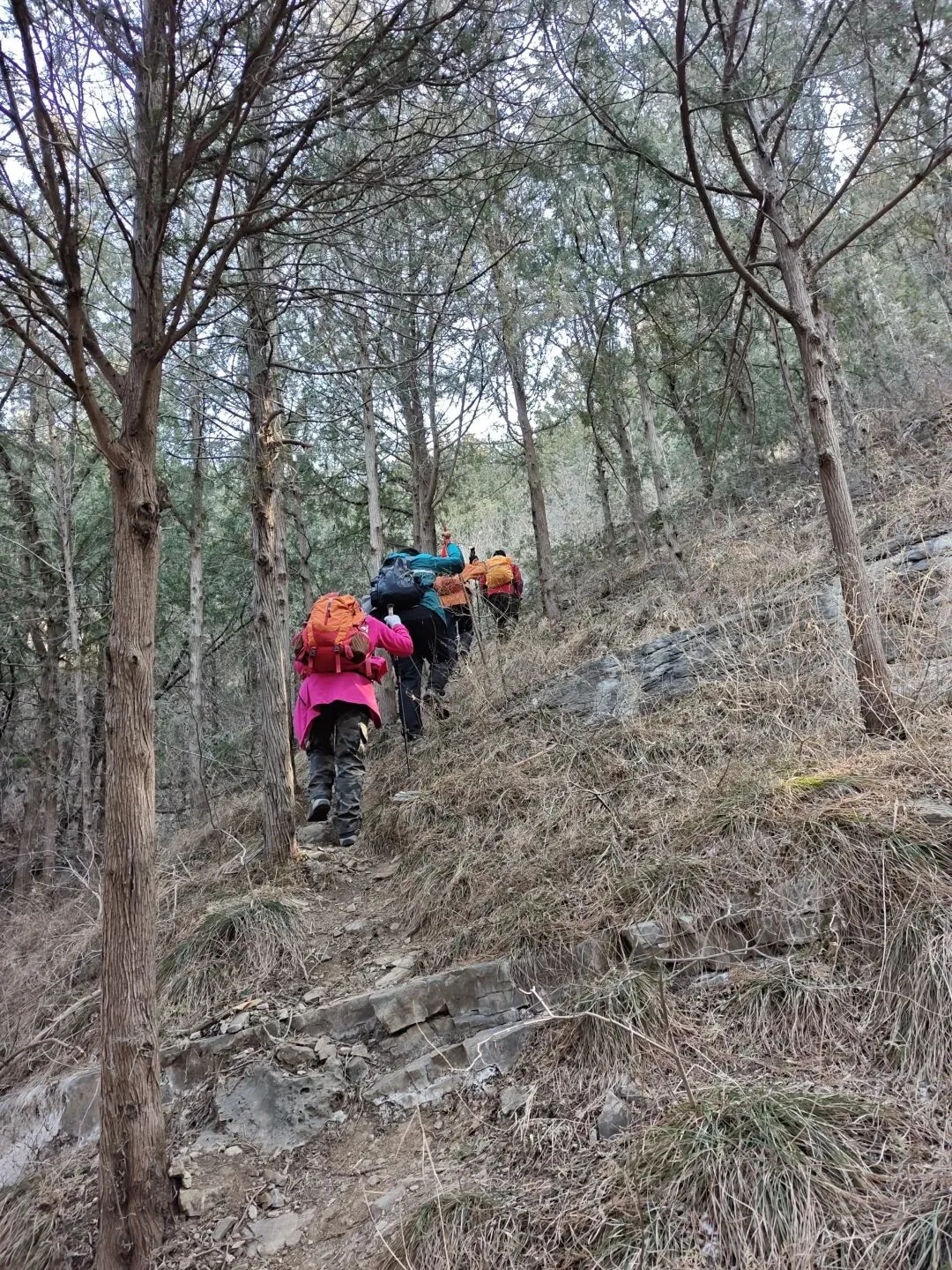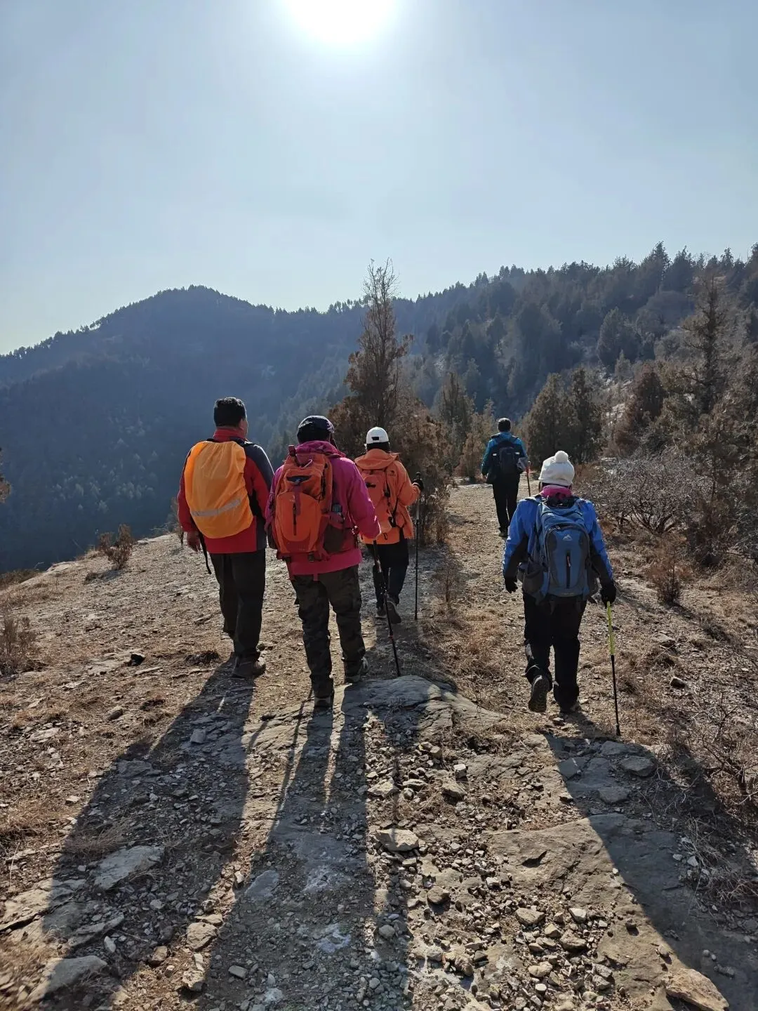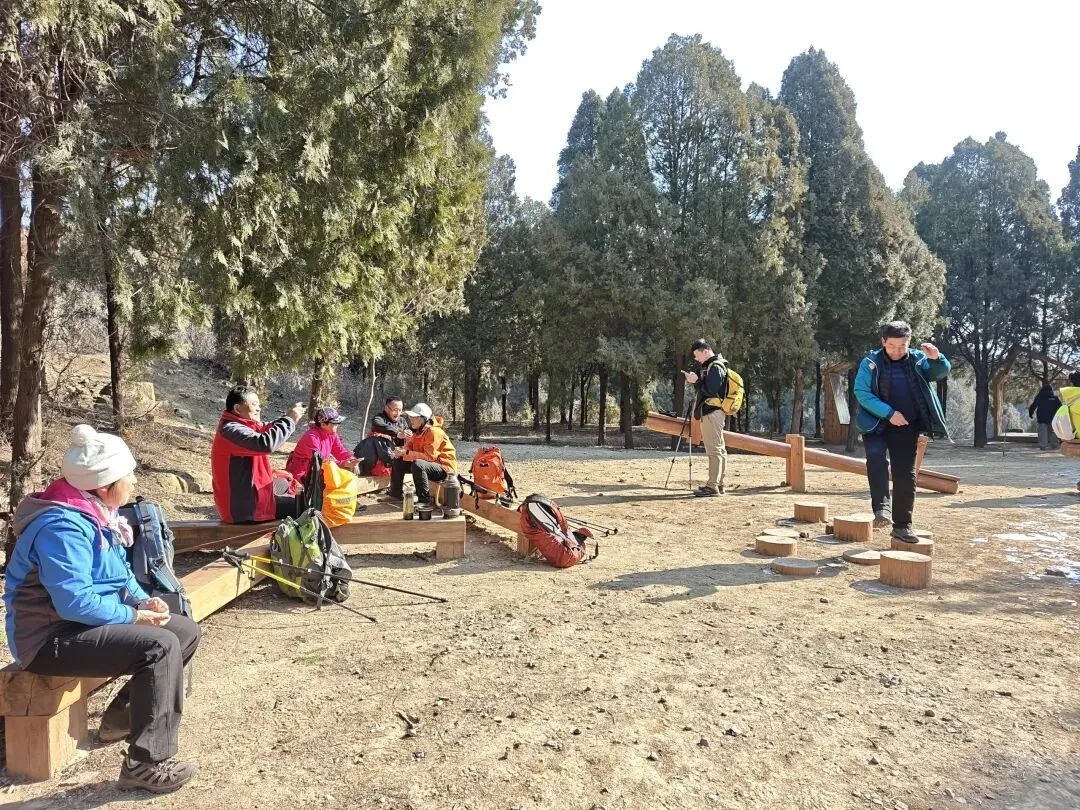 清晨8点半,从二环南高架小岭立交桥出发,穿过小岭村,迎着初升的太阳,沿着崎岖的山道缓缓上行。虽然预报气温较低,但初春的晨光还是让人感觉格外温柔,它轻柔地洒在山间步道,为我们这次穿越铺上了一层金色的薄纱。